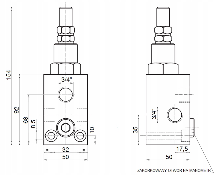 ПРОТОКОВИЙ КЛАПАН З ЛЮДИНОЮ. 3/4 90L 50-250bar (130) OM