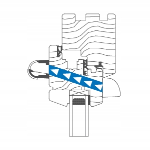 Вентиляционные клапаны AMO являются саморегулирующимися. Количество подаваемого воздуха зависит от разницы давления снаружи и внутри помещения. Это происходит до уровня перепада давления, при котором эффективность диффузора достигает максимального значения. Продолжая подниматься, крылья отклоняются, ограничивая количество подаваемого воздуха. Такая ситуация может быть вызвана, например, порывом ветра. Пользователь может закрыть заслонку, ограничив поток воздуха до минимума.