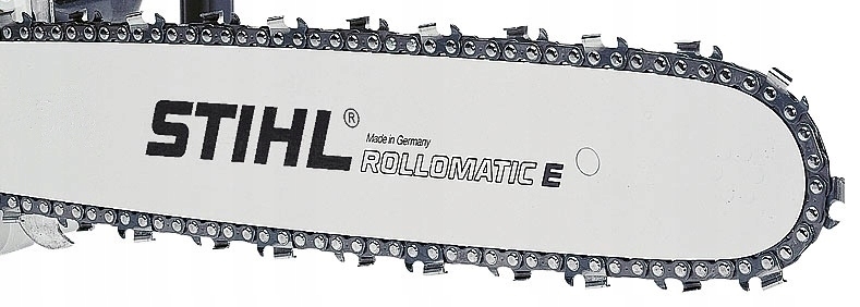 В направляющей Stihl Rollomatic E звездчатое колесо, установленное на ролике, направляет цепную пилу вокруг вершины пилы с одной стороны на другую. Звезда колесо не требует обслуживания и смазки. Трение и износ цепи и шины значительно снижаются, а более высокая производительность резания достигается при той же мощности привода.