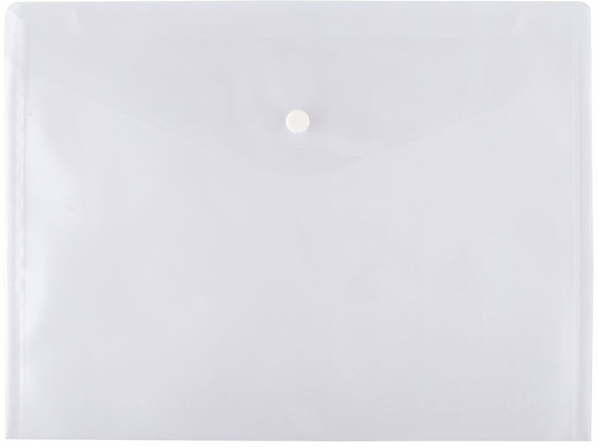 Папка из прозрачного полипропилена, напоминающая конверт для писем. Предназначен для хранения и переноски документов формата А4 и мелких предметов. Оснащен прочной застежкой-кнопкой. Цвет: бесцветный