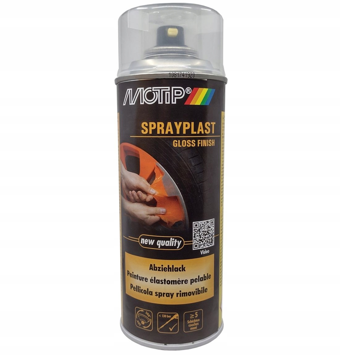 Бесцветный пластиковый лак (жидкая резина) Sprayplast Motip — идеальный продукт для использования в местах, где требуется постоянная или временная защита. Жидкое покрытие. резина создает очень гибкое покрытие, защищающее от сколов, царапин, грязи и влаги. Устойчива к разбавленным кислотам, жирам и маслам.