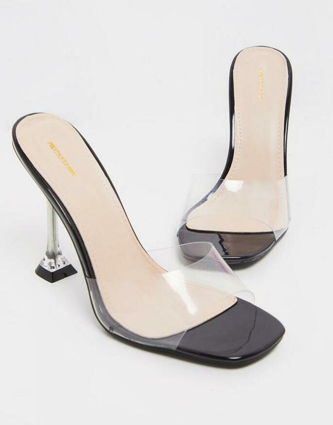 ПРОЗРАЧНЫЕ ТАПОЧКИ НА ВЫСОКОМ КАБЛУКЕ ИЗ ЭКО КОЖИ PRETTYLITTLETHING 42
