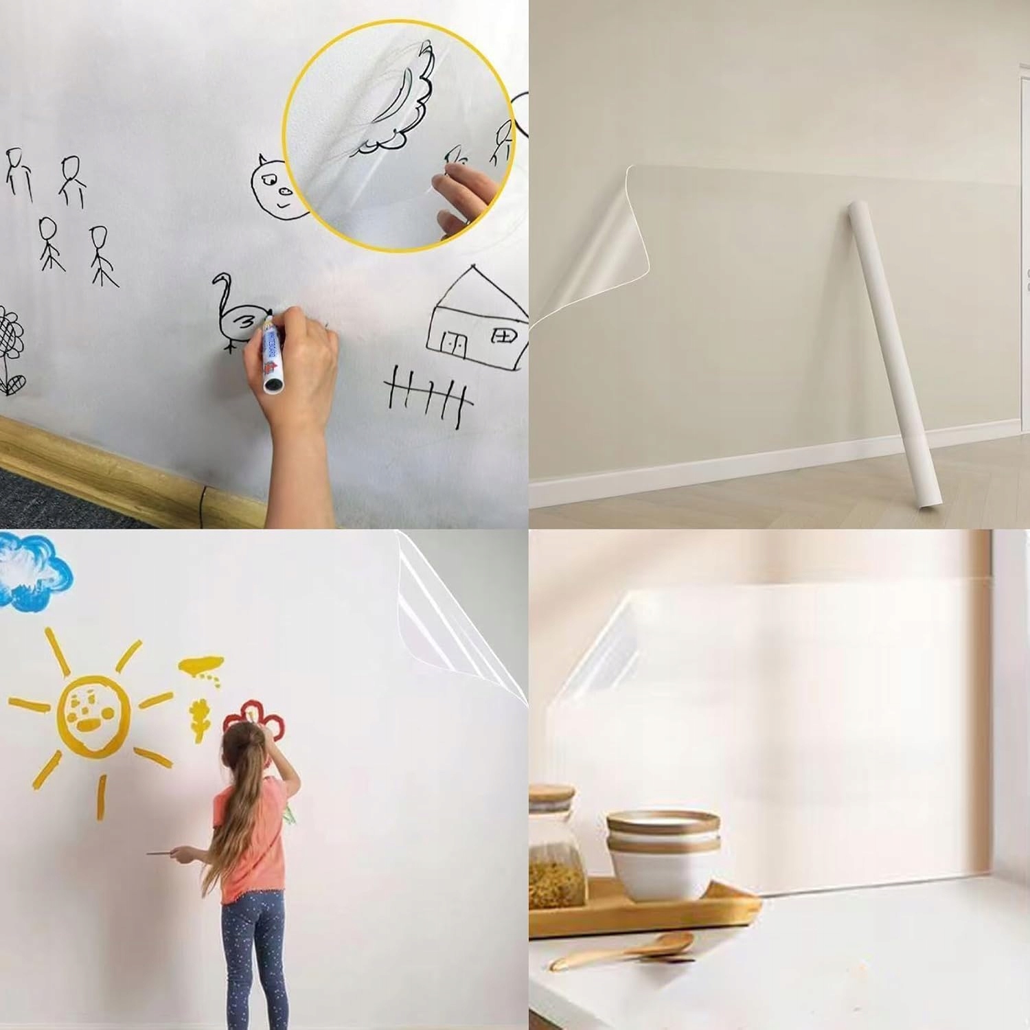 🚪🚪🚪 【Широкое применение】 Прозрачная самоклеящаяся пленка подходит практически для всех гладких, ровных и сухих поверхностей. Например, стены, столы, шкафы, двери, окна, стекло, зеркала или другие пластиковые, плиточные и металлические поверхности. Вы также можете рисовать или писать на поверхности, создавая уникальные украшения!