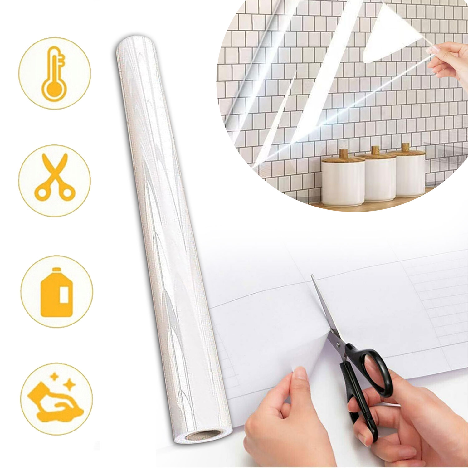 🔥🔥🔥 【Водонепроницаемый и маслостойкий материал】 Прозрачная клейкая пленка изготовлена из высококачественного ПЭТ-материала, который тщательно обработан и имеет гладкую поверхность. Самоклеящиеся мебельные пленки водонепроницаемы, маслостойки, влагонепроницаемы, брызгозащищены и грязеотталкивающие.