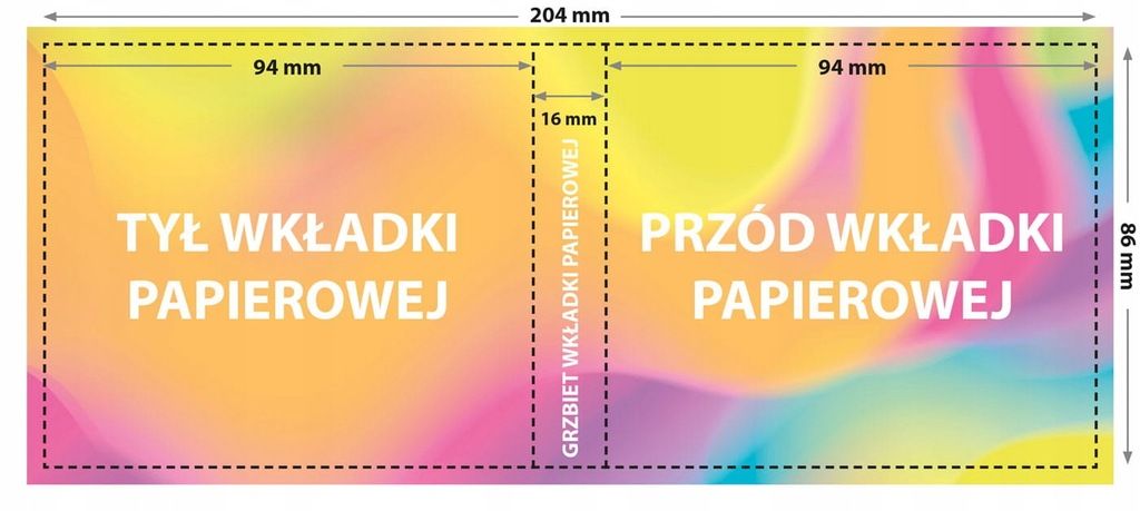 - размер обложки (±1 мм): 204 x 86 мм: - спереди: 86 x 94 мм - сбоку: 86 x 16 мм - сзади: 86 x 94 мм
