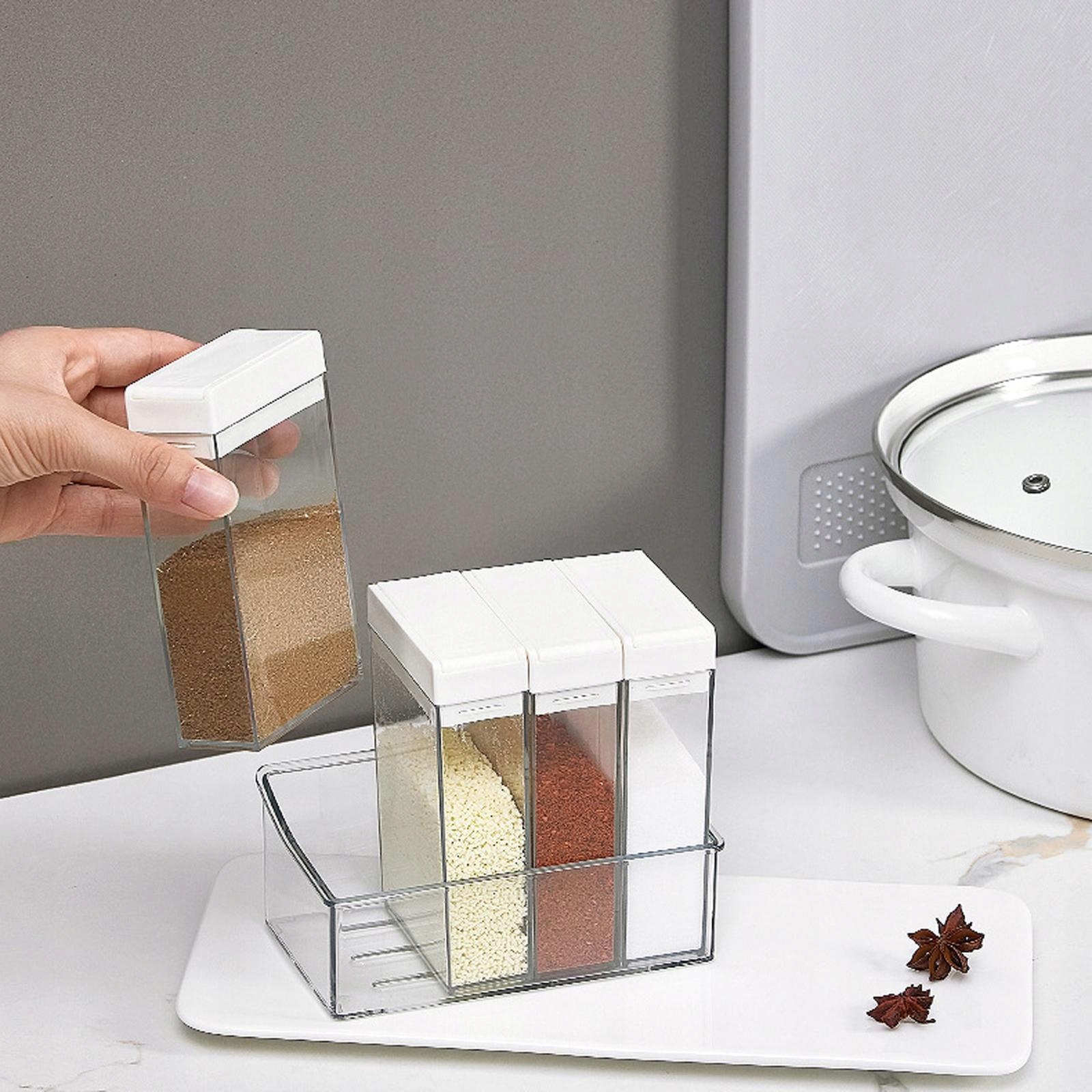 Многофункциональность: эти держатели для баночек для специй можно использовать для хранения различных специй, таких как перец, конфеты, соль, специи, порошок куриного бульона.