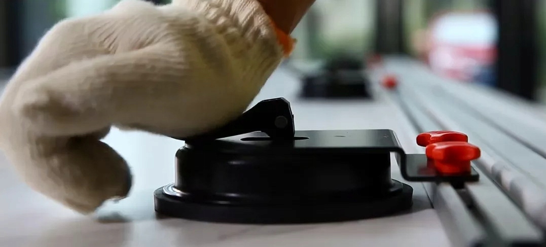 Полоска крепится с помощью трех независимых присосок. Присоски можно разместить в любом месте ленты. Благодаря этому вы легко сможете подогнать полосу под длину отрезаемой плитки.