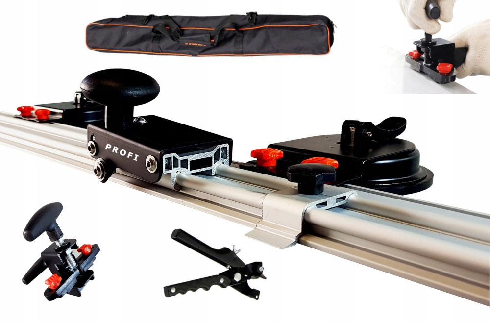 Высококачественный полный набор для резки плитки большого формата, керамогранита и кварцевого агломерата. Резак, необходимый для профессионального монтажа мегаформатов. Работа со штрипсом происходит несравнимо быстрее, чем с механическими резаками, а также ограничивает возможность неконтролируемого повреждения обрабатываемого материала.