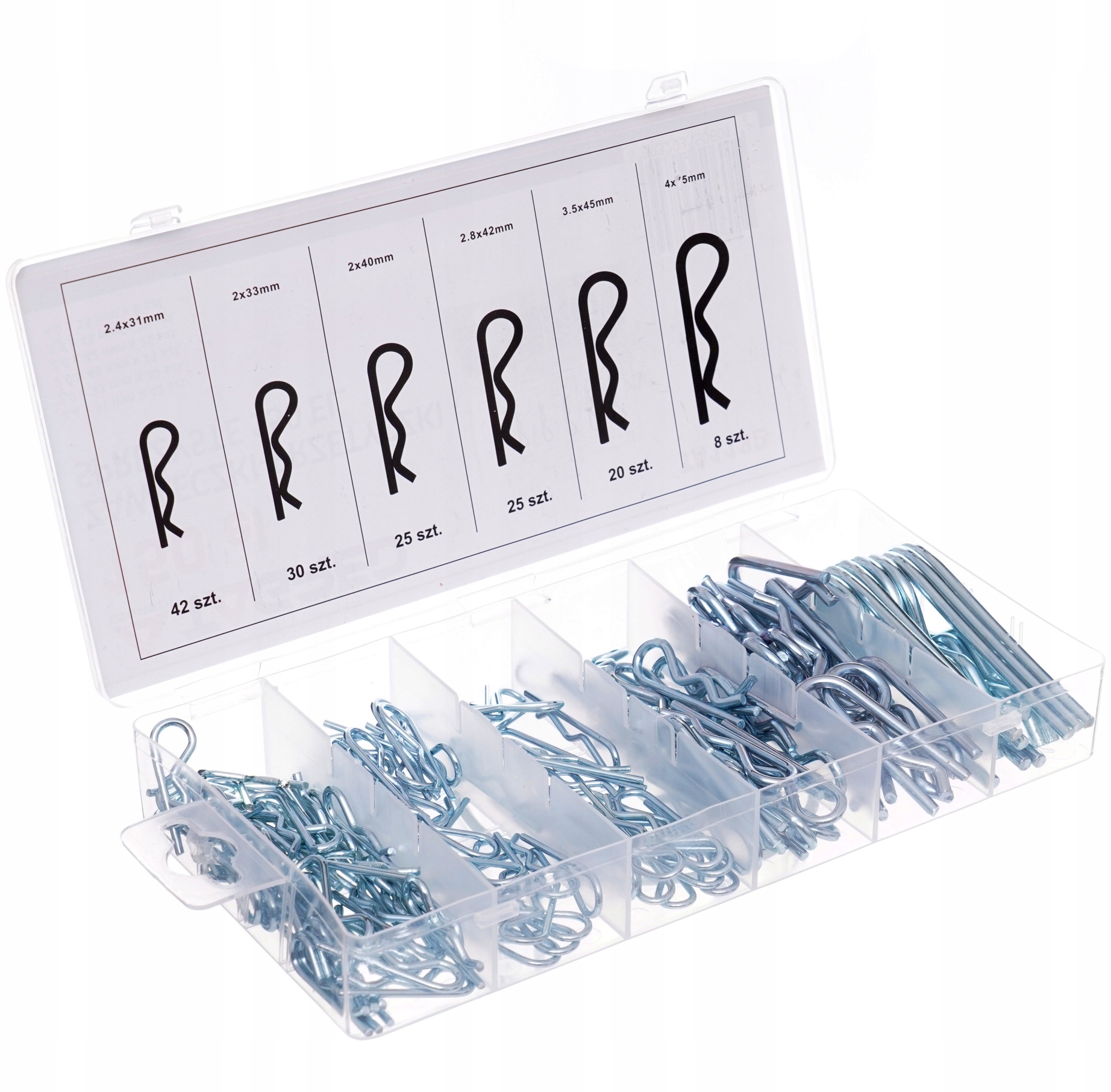 Набор пружинных штифтов прямо от производителя. Он используется для предотвращения соскальзывания элементов, установленных на валах, осях, штифтах или винтах.