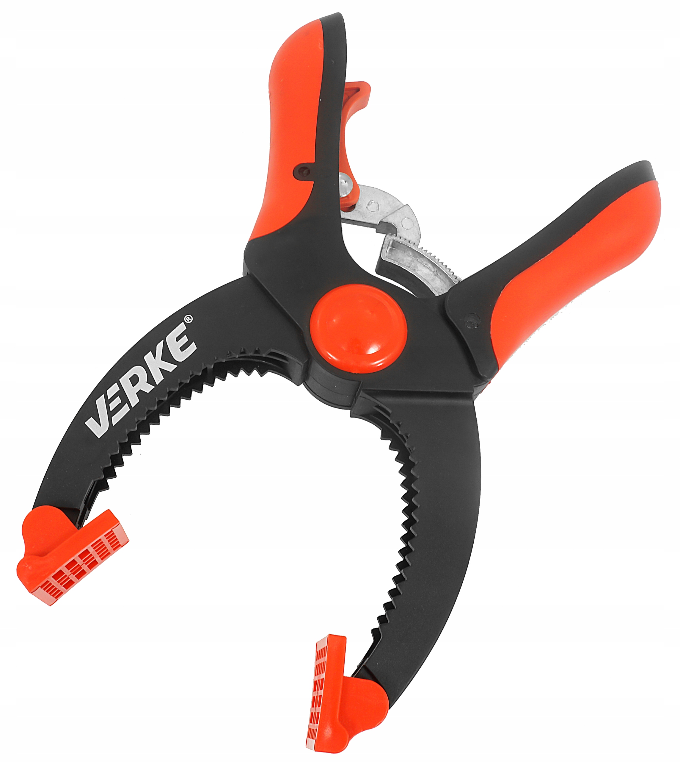 Пружинный зажим с храповым замком. Обеспечивает быстрое точечное крепление при склеивании и удержании различных элементов, например, при столярных и модельных работах.
