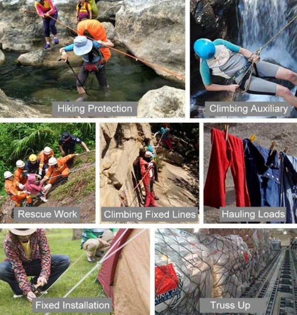 Эту веревку нельзя использовать в качестве несущей веревки для таких видов деятельности, как скалолазание, а можно использовать в качестве опорной веревки.