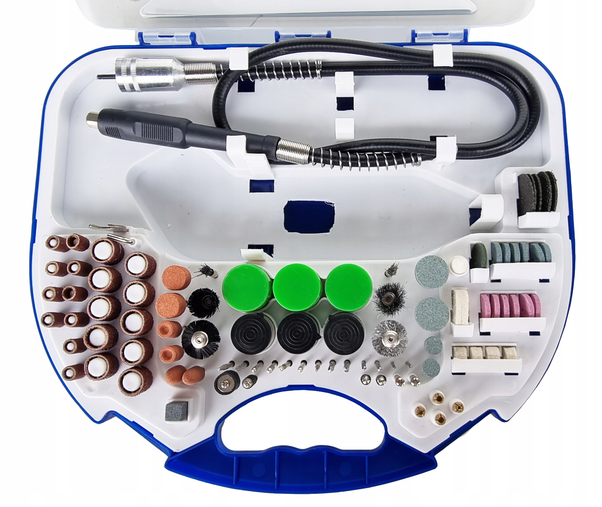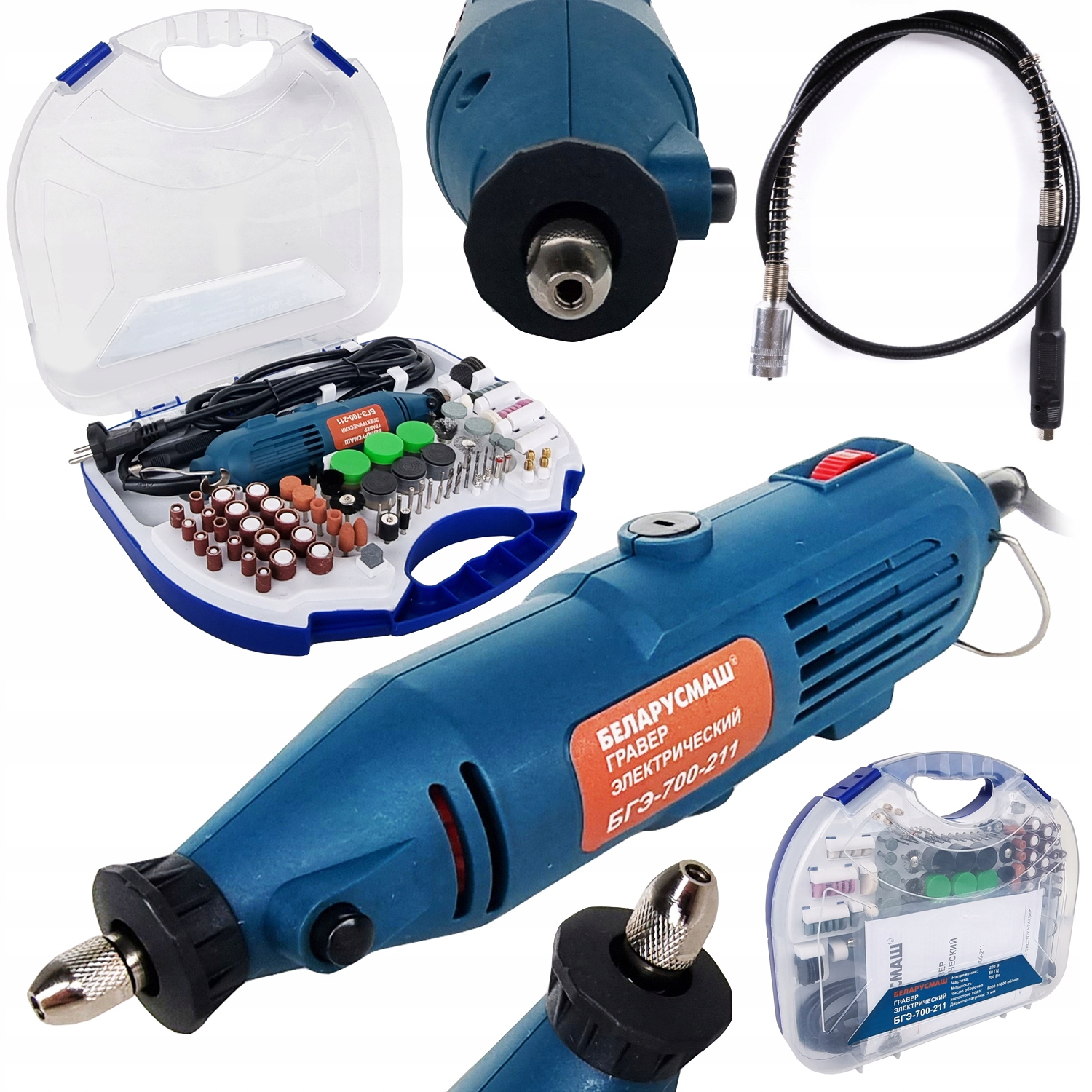 Мультишлифовальный станок с полным набором аксессуаров, устройство оснащено с электродвигателем мощностью 700Вт с возможностью плавного регулирования скорости в диапазоне 8000-35000 об/мин.
