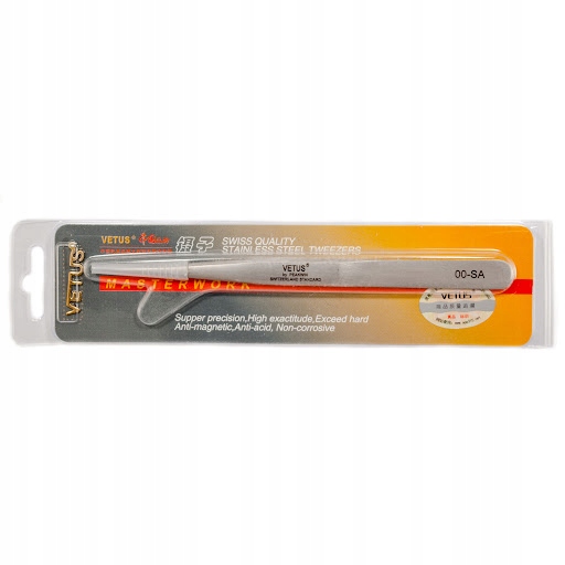Пинцеты Vetus 00-SA отличаются повышенным качеством изготовления, изготовлены из нержавеющей, немагнитной, антикоррозионной стали, имеют небольшой вес, хорошо и удобно лежат в руке. Гибкости и легкости движения кончиков достаточно для комфортной работы в течение длительного времени (долго работать тяжелым пинцетом будет достаточно сложно из-за необходимости оказывать давление).