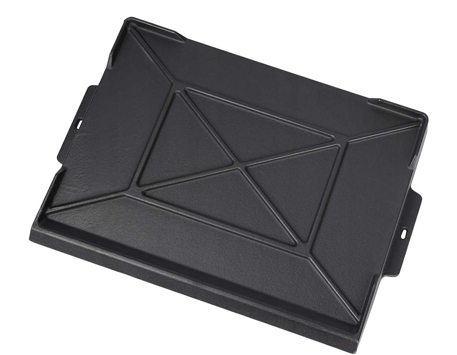 Размеры 58,6 × 40,5 × 6,5 см. Приподнятые стенки облегчают переворачивание продуктов, а усиленная сетчатая конструкция повышает устойчивость к высоким температурам. Контейнер для смазки предотвращает возгорание и облегчает очистку. Боковые ручки обеспечивают удобную переноску.