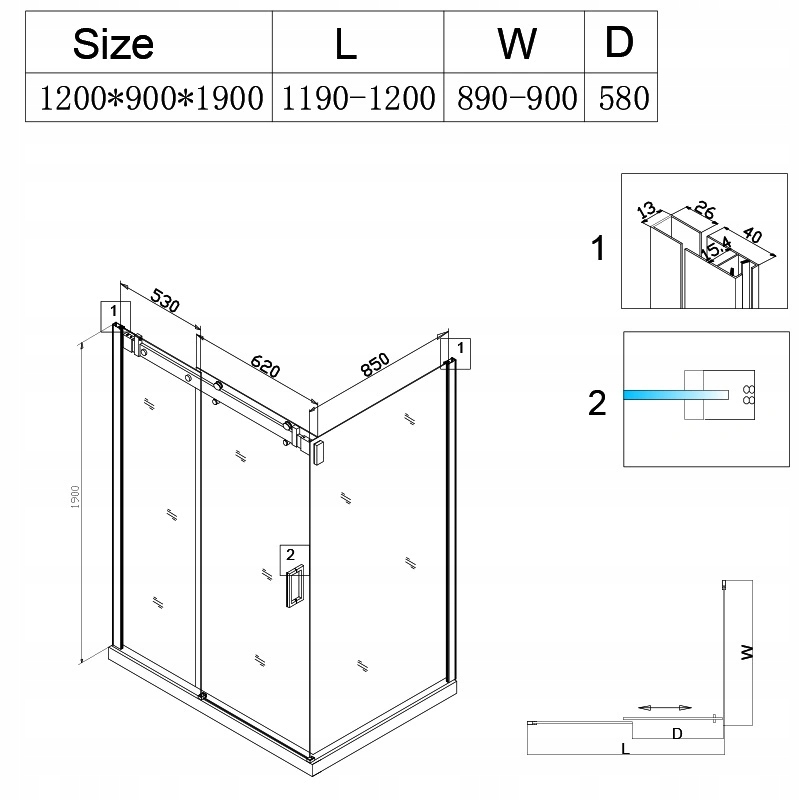 прямоугольная душевая кабинка KZ202C Chrome 120x90 CM H1> Модель: KZ202C -120x90 h2>