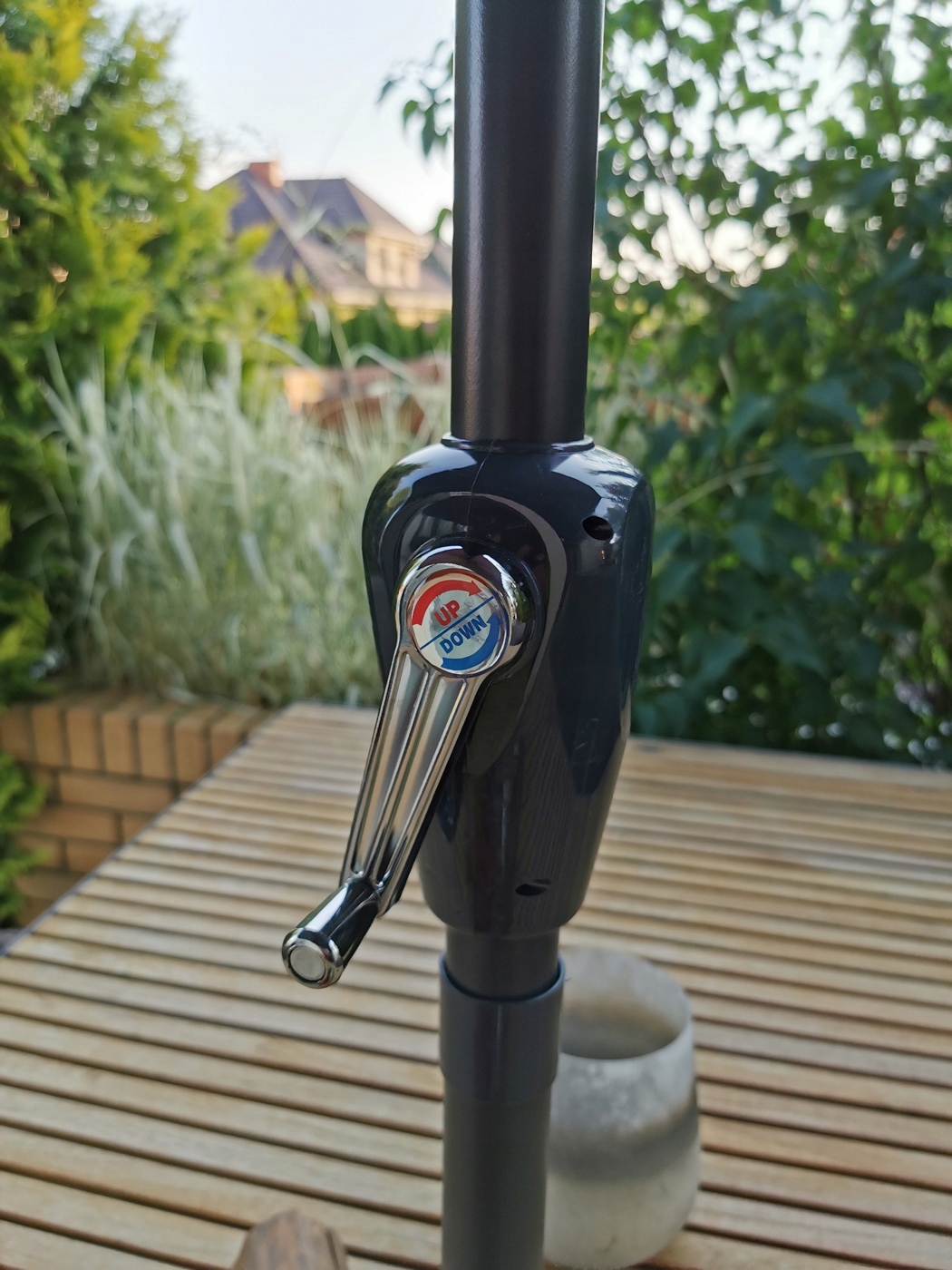 - В каркасе имеется функция регулировки угла наклона головки зонта.