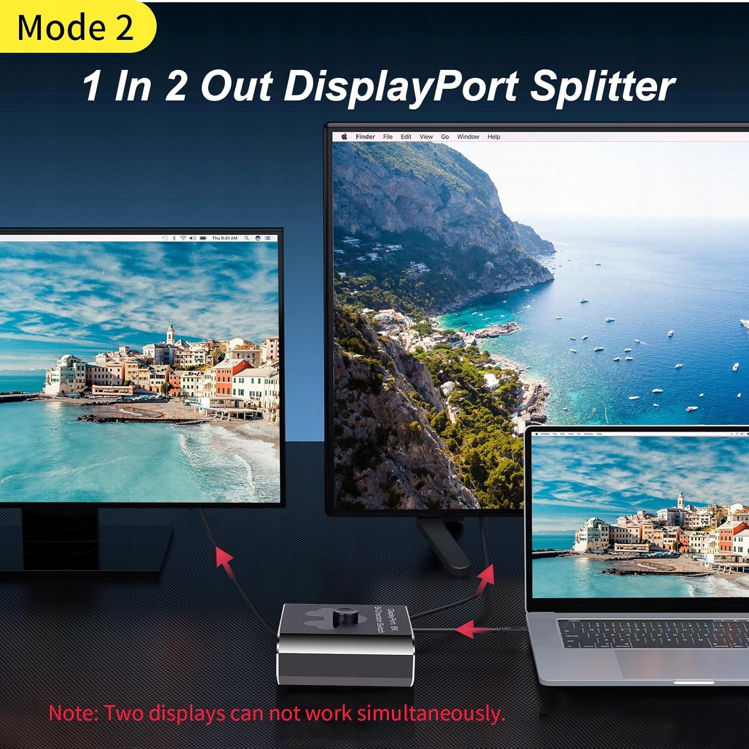Przełącznik DisplayPort dwukierunkowy 8K 2 w 1 wyjście / 1 w 2 wyjścia