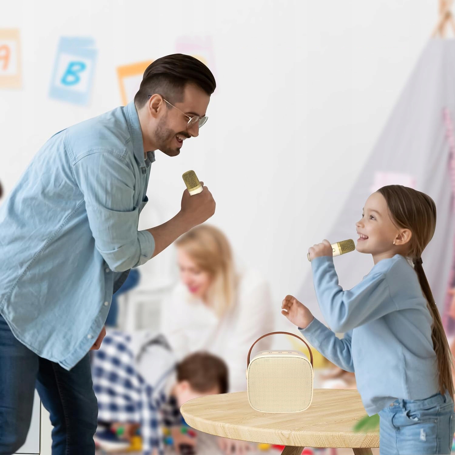 👍👍Долговечность караоке-машины: Встроенный аккумулятор караоке-машины может работать 5–10 часов после полной зарядки. Наслаждайтесь караоке без перерыва. Идеально подходит для дня рождения, Рождества, вечеринки и других мероприятий на свежем воздухе. Детское караоке-автомат можно использовать как караоке-систему, музыкальный проигрыватель, динамик с микрофоном и т. д. (Вы также можете использовать динамик без микрофона)