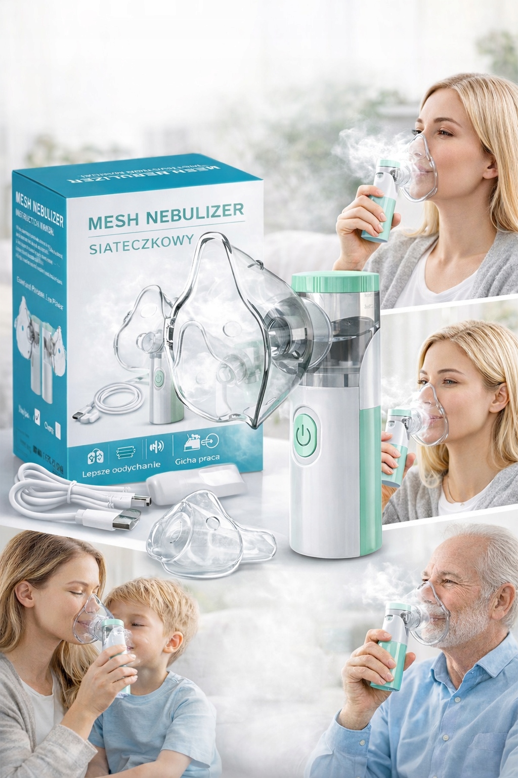 PRZENOŚNY INHALATOR NEBULIZATOR SIATECZKOWY CICHY DLA DZIECI i DOROSŁYCH v2