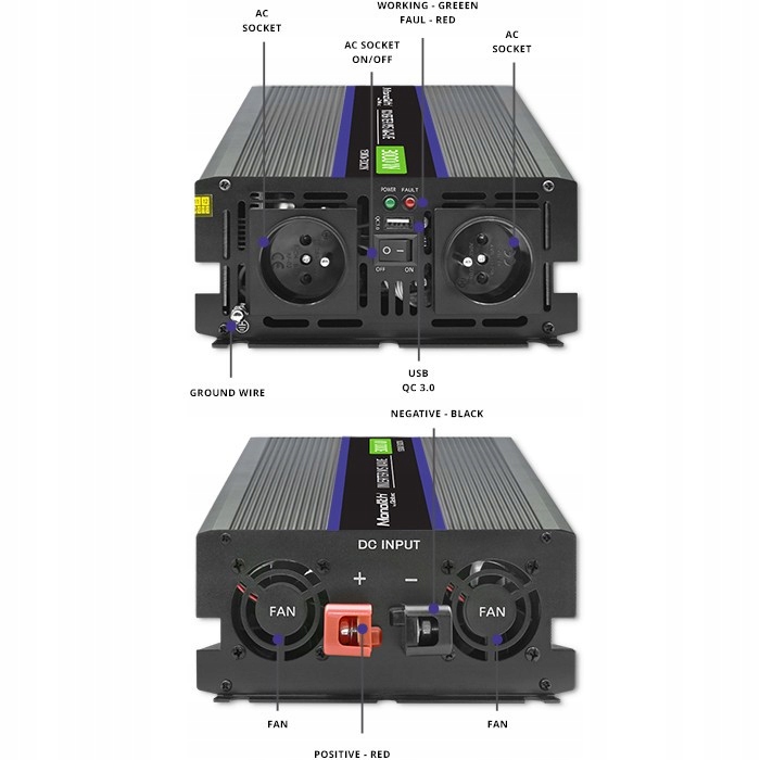 Модифицированная синусоидальная волна — простая конструкция, меньшая частота отказов.Устройства, которым не требуется чистая синусоидальная волна, например, светодиодные источники питания, светодиодное освещение, компьютеры, ноутбуки, мелкая бытовая техника, будут работать с модифицированный синусоидальный преобразователь без проблем. Он формирует на выходе синусоидальную волну переменного напряжения, приблизительную форму сигнала, действующее значение которой совпадает со значением синусоидальной волны, возникающей в электросети. Этот тип преобразователя прежде всего характеризуется меньшей интенсивностью отказов и простой конструкцией. Обеспечьте своим устройствам соответствующие условия работы.При выборе подходящего преобразователя стоит обратить внимание на значение мощности и напряжение аккумулятора, которые должны соответствовать данным, указанным на преобразователь, чтобы гарантировать, что наше оборудование соответствует условиям работы. Также важно количество подключаемых устройств, например, при подключении ноутбука и принтера мощность обоих устройств должна суммироваться. Помните, что мощность, потребляемая подключенным устройством, не должна превышать 85 % от номинальной мощности преобразователя.Не тратьте энергию впустую во время путешествия.Изделие идеально подходит в качестве источника энергии. источник в кемперах или трейлерах во время семейных поездок. Вы планируете более длительный отпуск в кемпинге или на озере и ищете способ подключить ноутбук или зарядить телефон на яхте? Стоит хорошо подготовиться. Благодаря преобразователю Qoltec вы сможете питать свои устройства где угодно и наслаждаться удобством и комфортом. Преобразователь напряжения станет идеальным источником энергии для владельцев яхт и катеров. Это интеллектуальное устройство позволит вам обеспечить питанием ваше оборудование во время длительных поездок вдали от дома, имеет USB-порт и сетевые розетки, к которым можно подключать электрические устройства. Вы без проблем сможете зарядить свой телефон, ноутбук или подключить другое устройство, мощность которого не превышает мощность преобразователя, более того, при этом можно заряжать аккумулятор.В зависимости от мощности, потребляемой устройством. Преобразователь мощностью 1500 Вт может питать такие устройства, как:Техника RTV: телевизор, игровая приставка, музыкальная аппаратура, радиоприемник, Бытовая техника: чайник, кофемашина, тостер, тостер, Офисная техника: компьютеры, принтеры, ноутбуки.Преобразователь также можно использовать не только во время путешествия, но и в качестве аварийного источника энергии, например, для поддержания электропитания оборудования в качестве источника питания ИБП во время временного отключения электроэнергии от электросети. Прочный и легкий корпусКорпус изготовлен из высококачественного алюминия, устойчивого к ударам и механическим повреждениям. Это идеальный выбор для людей, которые любят дальние путешествия. Благодаря преобразователю со встроенной розеткой вы можете использовать практически любое устройство, требующее подключения к розетке. Изделие имеет USB-порт для зарядки мобильных устройств и автоматический вентилятор, обеспечивающий надлежащее охлаждение. Полная уверенность в качестве питания ваших устройств.И