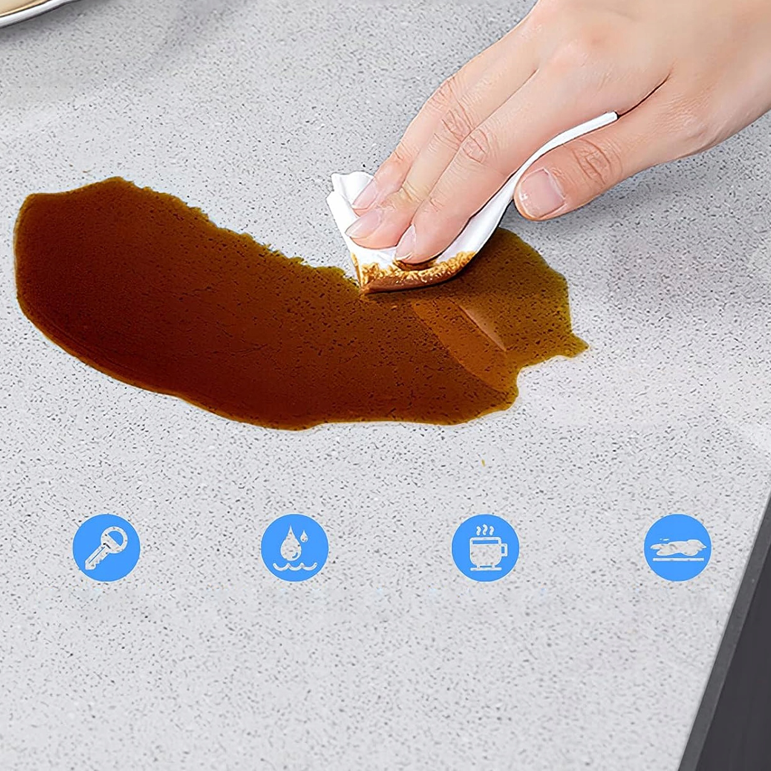 -Настольный коврик имеет закругленные края, все края отполированы. Он достаточно гладкий, чтобы защитить ваши предплечья и локти от ударов, царапин и травм.