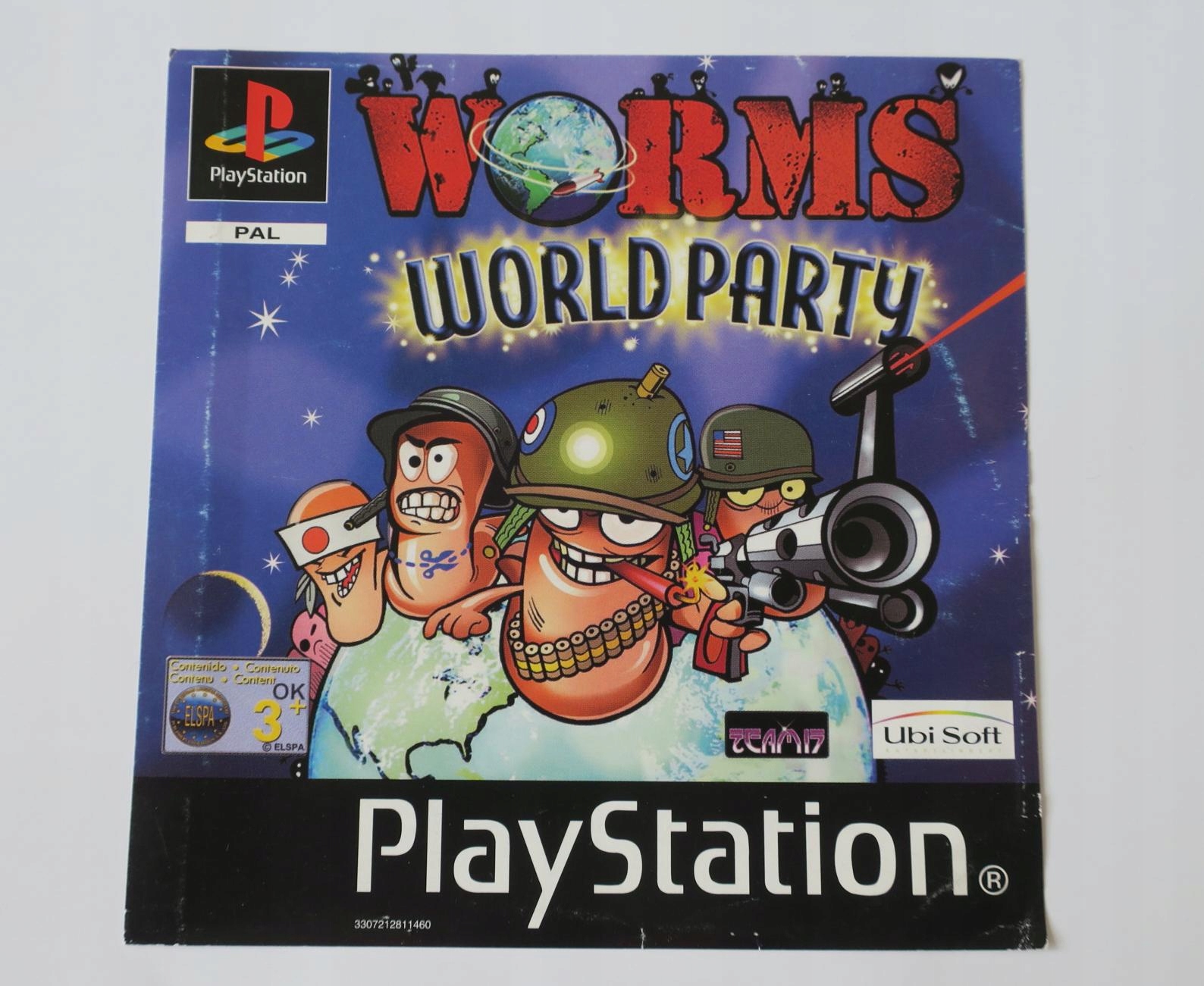 PS1 WORMS WORLD PARTY ПЕРЕДНЯ КРИШКА PLAYSTATION 1 PSX