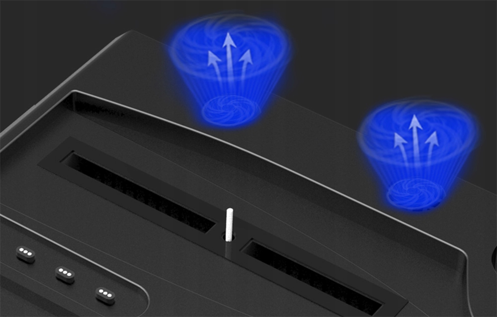 Стойка iPega позволяет заряжать 2 контроллера PS5 и 2 контроллера MOVE одновременно, экономя ваше время . Кроме того, это облегчит поддержание порядка и хранение консоли и ее аксессуаров. Он также оснащен 2 вентиляторами, предотвращающими перегрев оборудования, и 2 крючками для наушников или очков VR.