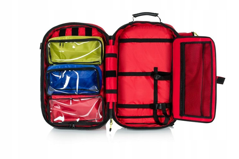 В комплект входит дополнительный рюкзак меньшего размера с 5 карманами на молнии, позволяющими разместить перевязочные материалы. Рюкзак можно прикрепить к основному рюкзаку с помощью специальных ручек (расположенных сбоку большого рюкзака).