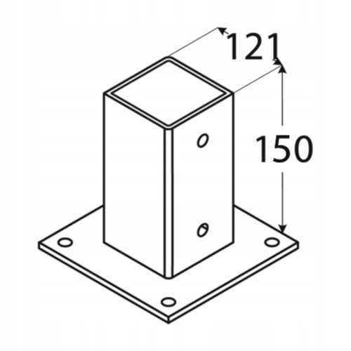 ОСНОВАНИЕ ПРЯМОУГОЛЬНОГО СТОЙКА PSP70, ПРИВИНЧЕННОЕ К БЕТОНУ, 121x180x2,0