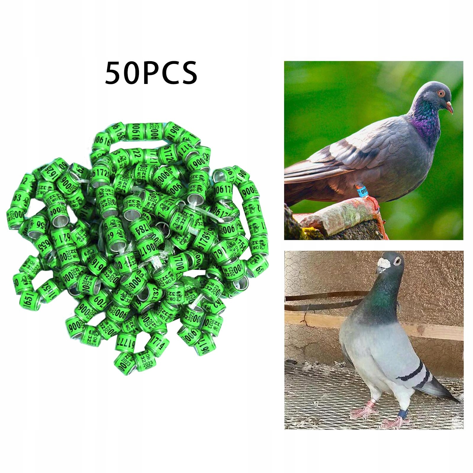 50x2023 Кольца на лапки голубя Ремешки на лапки птиц для бантамки и зяблика, канареечно-зеленая трава
