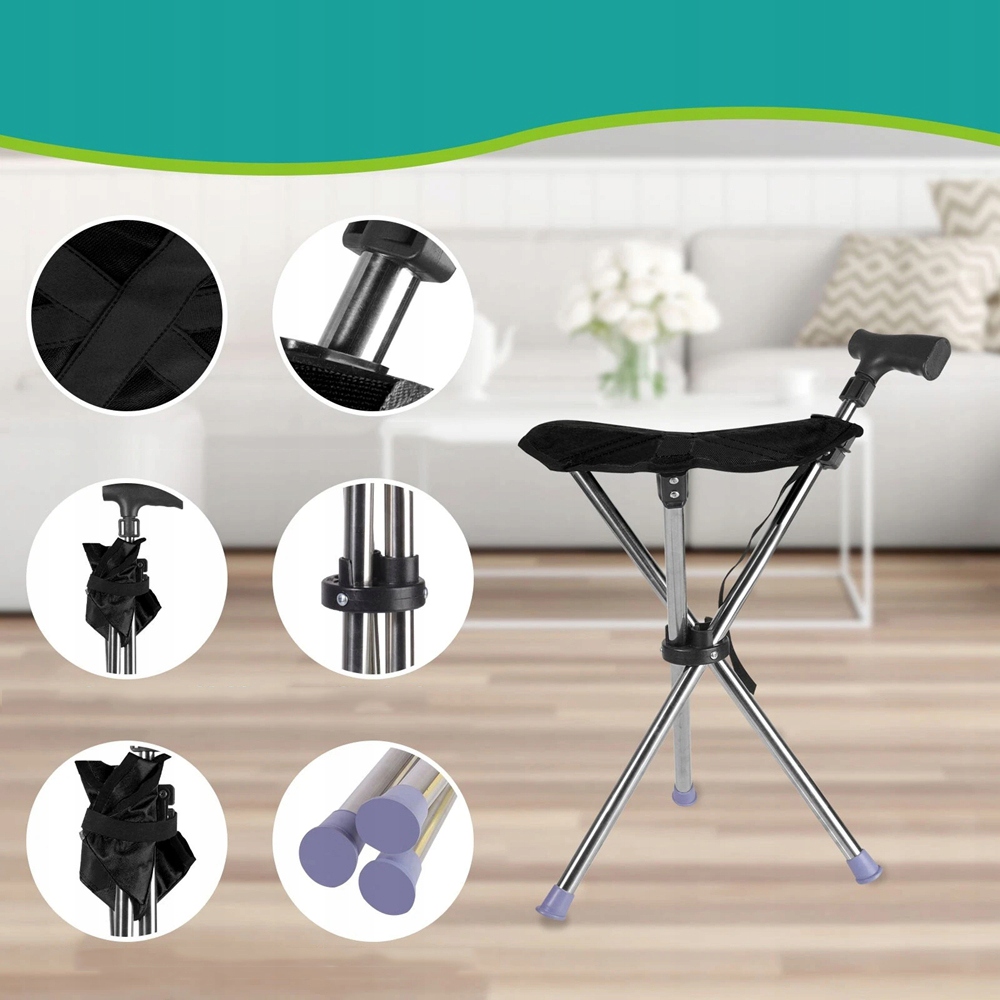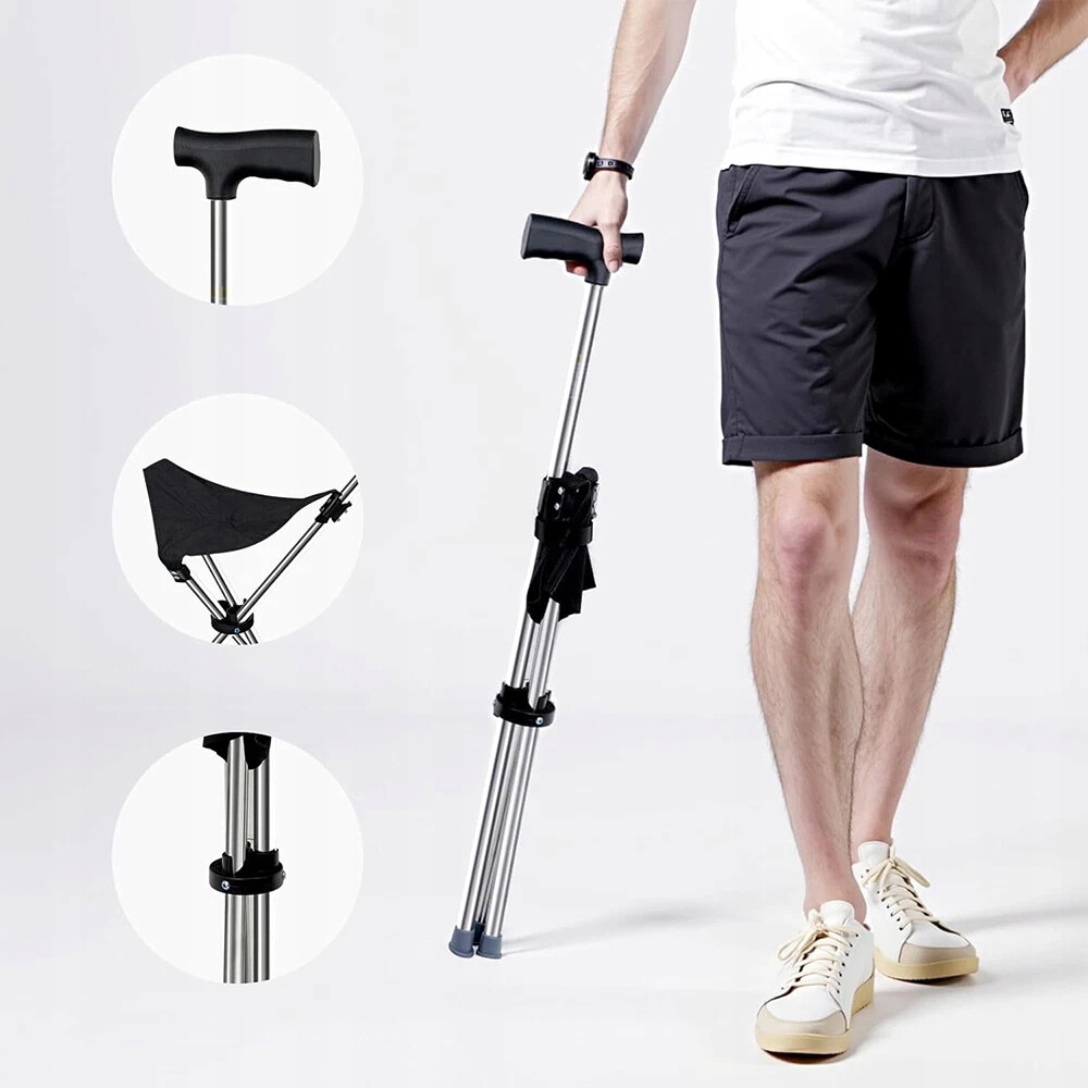Эта универсальная цыпочка с сиденьем можно использовать как в качестве ходячих цыпочка, так и складывающегося стула. Регулируемая высота в положении палки составляет от 68 до 88 см. В сидячем положении высота составляет около 44 см. Идеально подходит для выставок, в очереди, в путешествиях, на прогулке и т. Д.