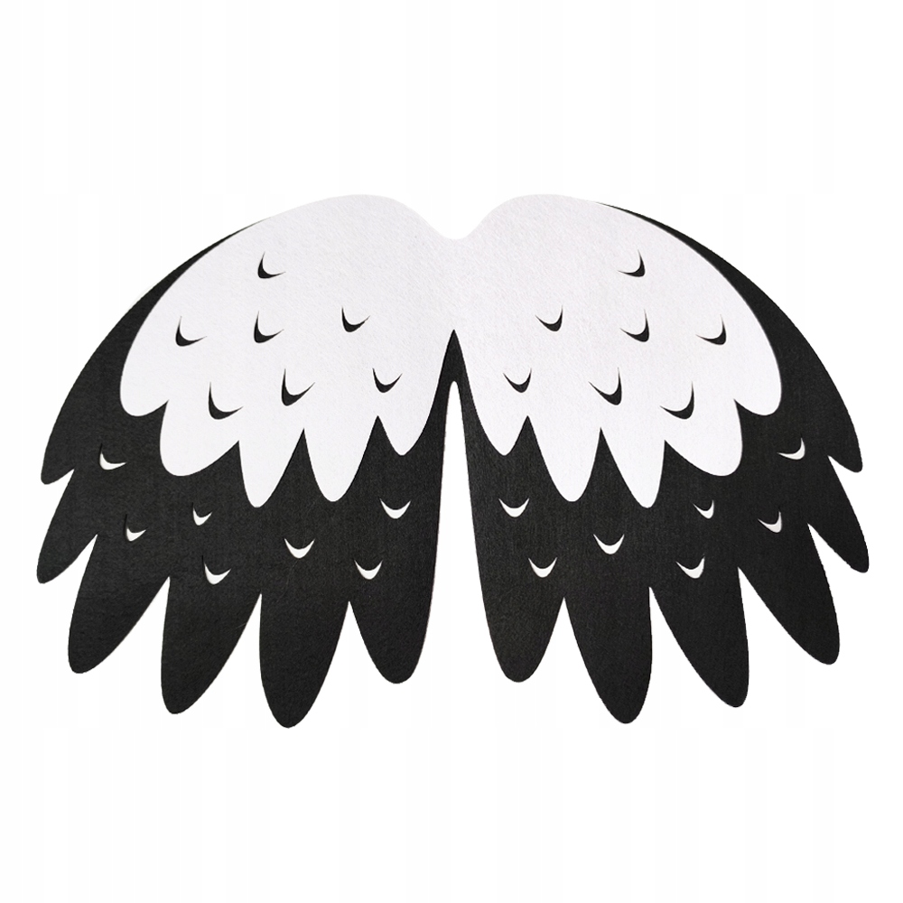 Кейп , вдохновленный появлением аиста , был сделан из двух слоев войлока в тщательно выбранных цветах - белый и черный - которые отражают характерную окраску этой птицы. Индивидуальные слои войлока расположены в , мягко округлые перья , они также имеют тонкие вырезы, создавая эффект естественного оперения! Он прикреплен к двум гибким эластичным полосам.