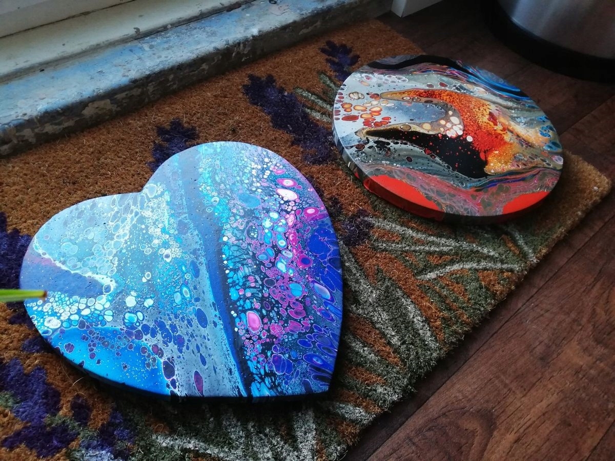 3 холста в фольгированном наборе, наклеены на жёсткую доску.