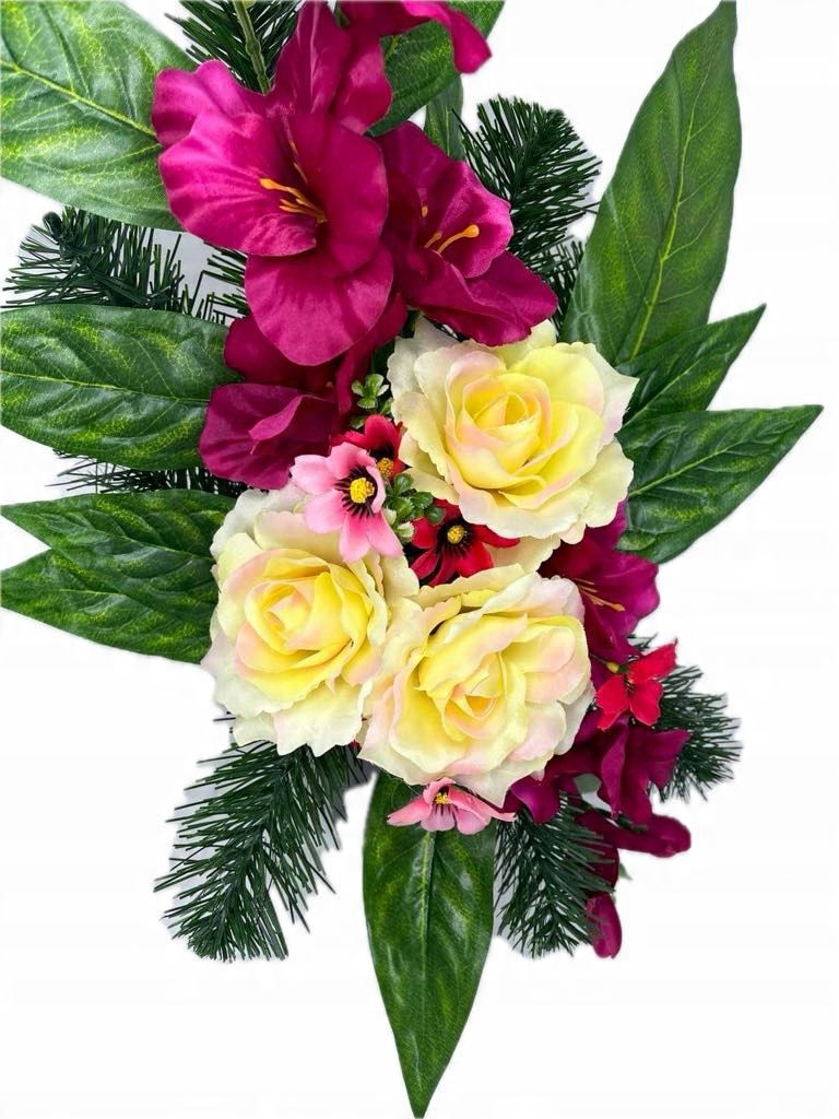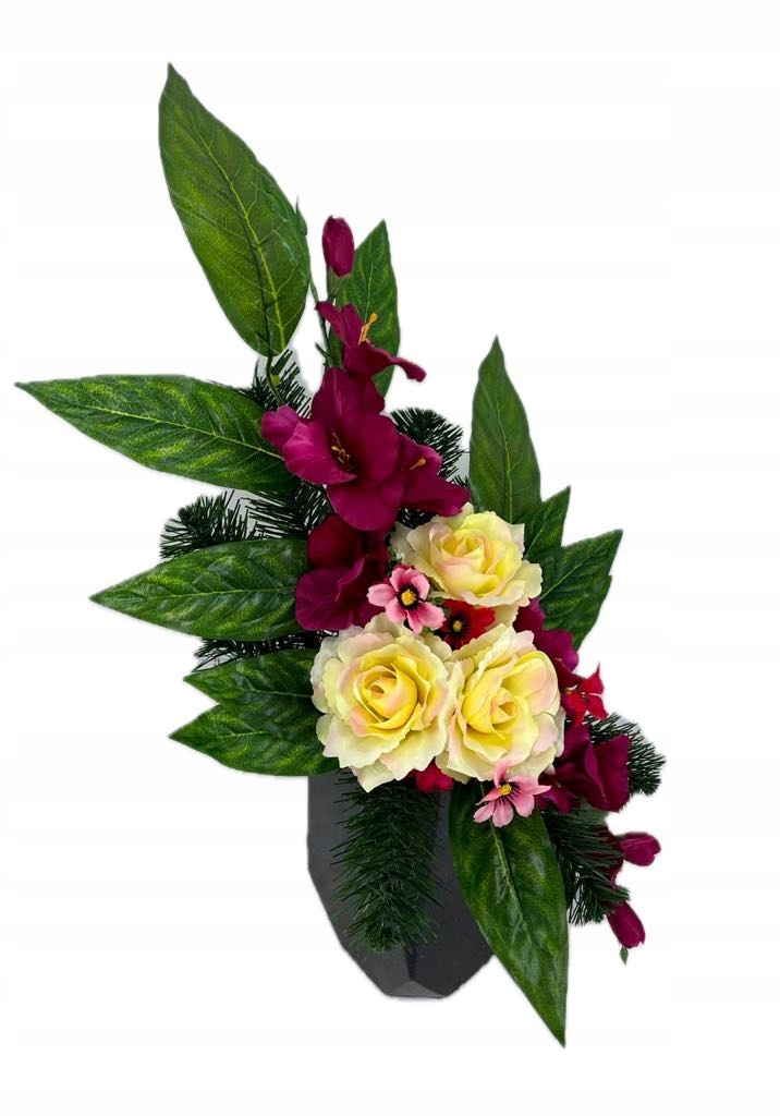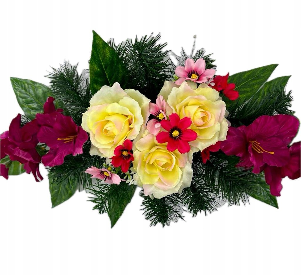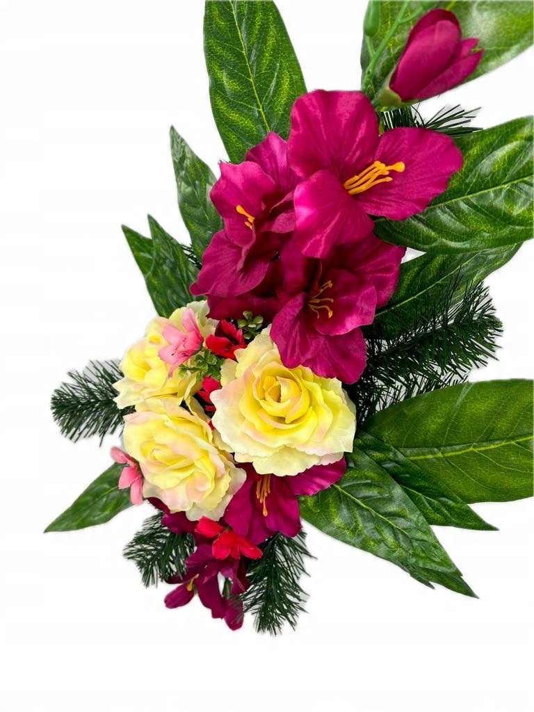 НАБОР ИЗ СТРОЯ И БУКЕТ ИСКУССТВЕННЫХ ЦВЕТОВ ДЛЯ МОГИЛЫ, РОЗА, СЛАВНАЯ