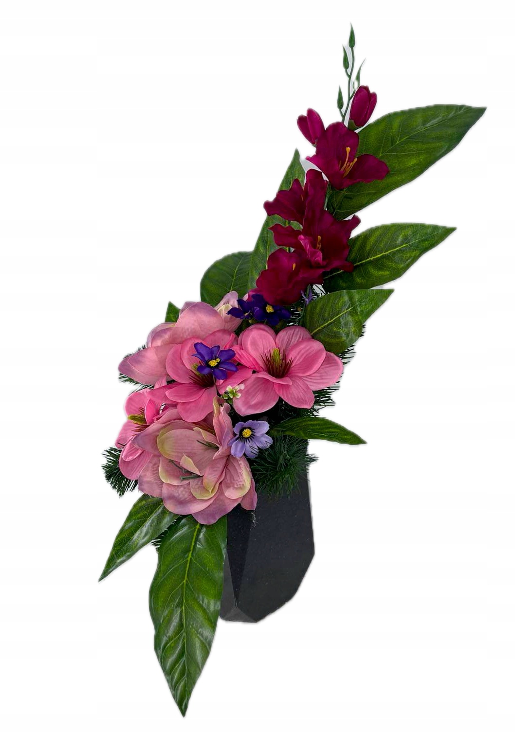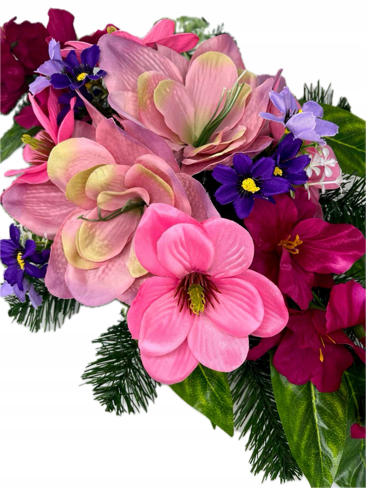 НАБОР СТРАННЫХ И БУКЕТ В ВАЗЕ ДЛЯ КЛАДБИЩА - РОЗОВЫЕ И ФИОЛЕТОВЫЕ ЦВЕТА И НАСОКАЯ ЗЕЛЕНАЯ РАСТИТЕЛЬНОСТЬ. ВЫСОКОКАЧЕСТВЕННОЕ ИЗГОТОВЛЕНИЕ С ВНИМАНИЕМ К КАЖДОЙ ДЕТАЛИ.