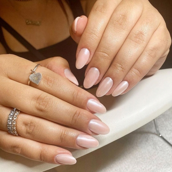 ✨ Создает на ногтях a поверхность со слегка перламутровым и зеркальным эффектом, которая в зависимости от угла падения света переливается серебристым или металлически-белым.