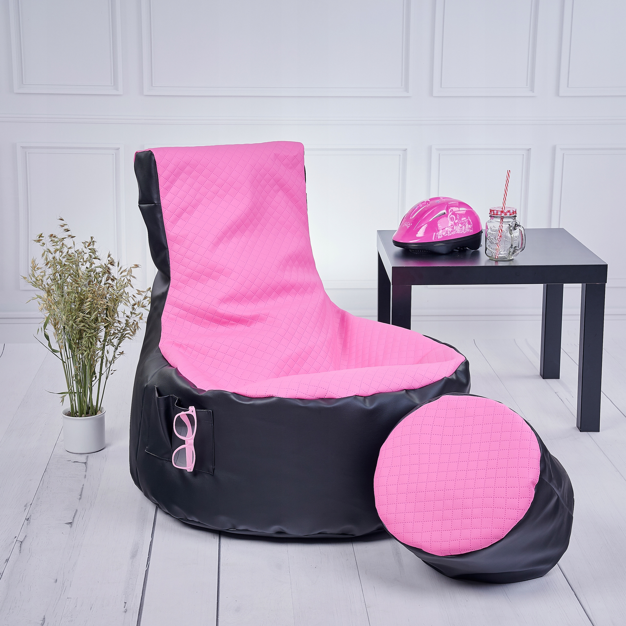 - Прочный стеганый материал в верхней части пуфа и подножки.