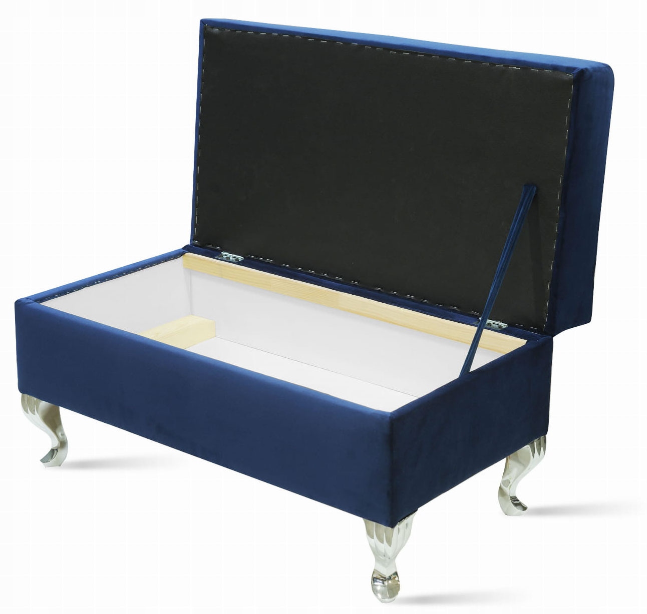 Мягкий пуф LEMON 18 с контейнером шириной 75 см. Мебель имеет привлекательную строчку и стежку из кристаллов. Прочный каркас из ДСП, усиленный массивом дерева, сиденье из пеноматериала Т30 толщиной 10 см. Представленная модель опирается на очень прочные металлические хромированные ножки. 100% польский продукт. Упаковано в пакет - требует прикручивания ножек.