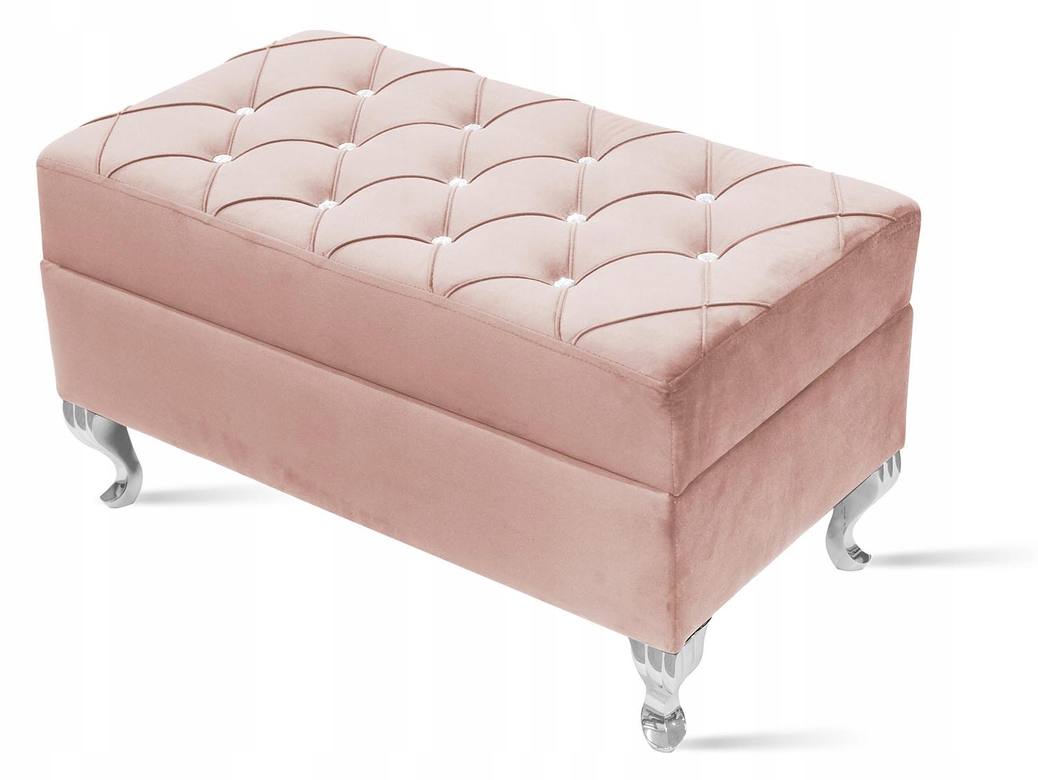 Мягкий пуф LEMON 18 с контейнером шириной 75 см. Мебель имеет привлекательную строчку и стежку из кристаллов. Прочный каркас из ДСП, усиленный массивом дерева, на сиденье пенопласт Т30 толщиной 10 см. Представленная модель опирается на очень прочные металлические хромированные ножки. 100% польский продукт. Упаковано в пакет - ножки нужно прикрутить.