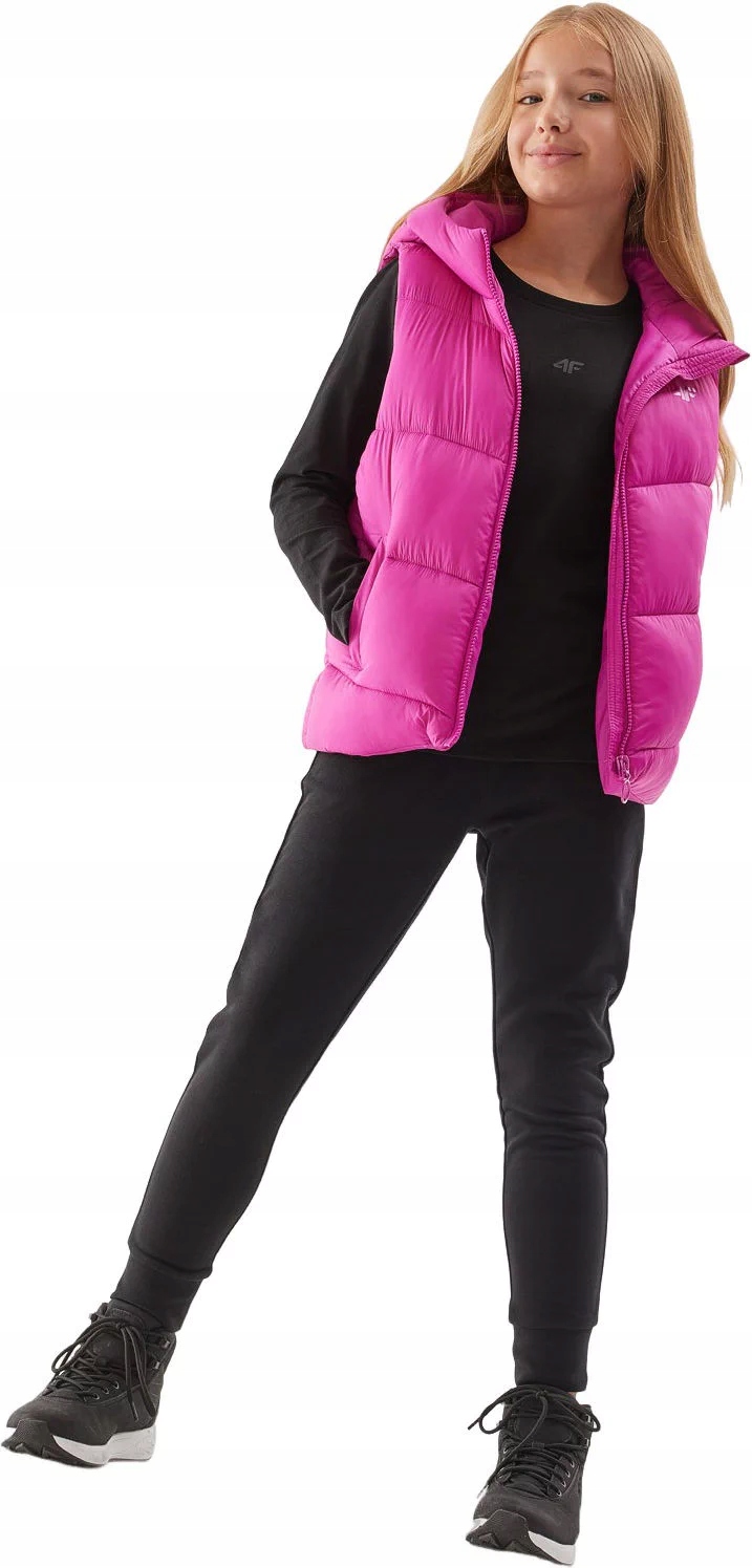 Жилет для девочек 4F – идеальное решение для вашей дочери, которой нужна теплая, но легкая одежда. Изготовленный из высококачественных материалов, жилет обеспечит исключительный тепловой комфорт благодаря передовой технологии 4F Warm. Боковые карманы позволят хранить мелкие предметы, а встроенный капюшон защитит от ветра и дождя. Жилет легкий и не стесняет движений, что делает его идеальным для повседневной деятельности. Пусть вашей дочке всегда будет тепло и модно в современном жилете 4F.