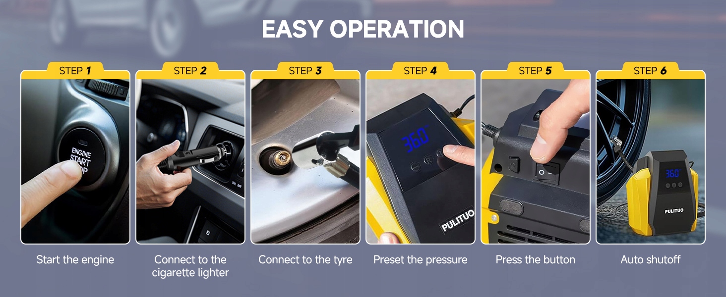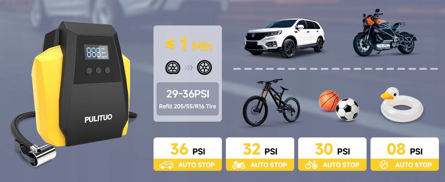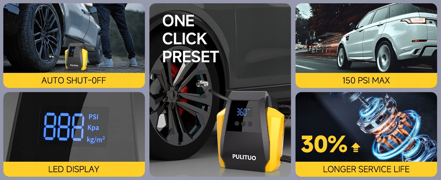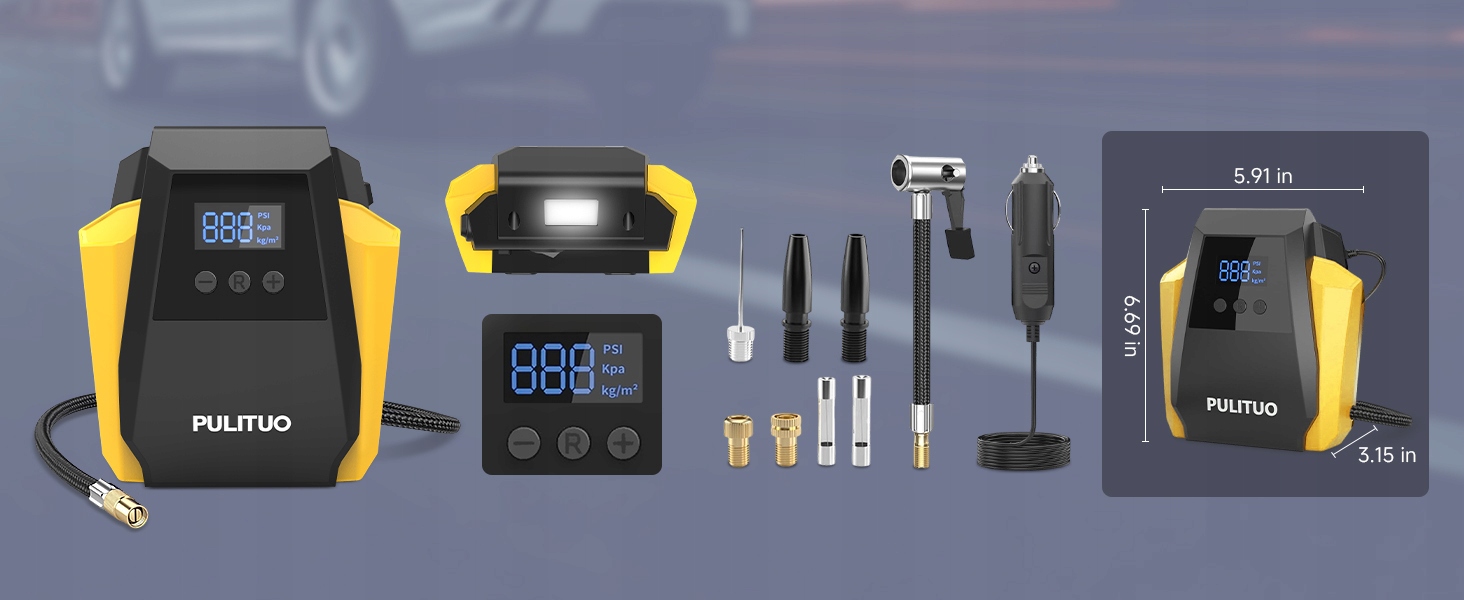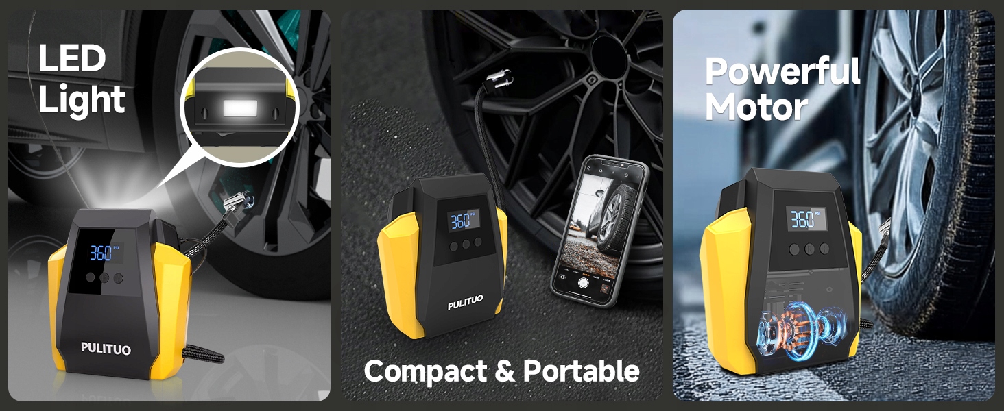 Pulituo Car Tire Pump - портативный воздушный компрессор 12 В