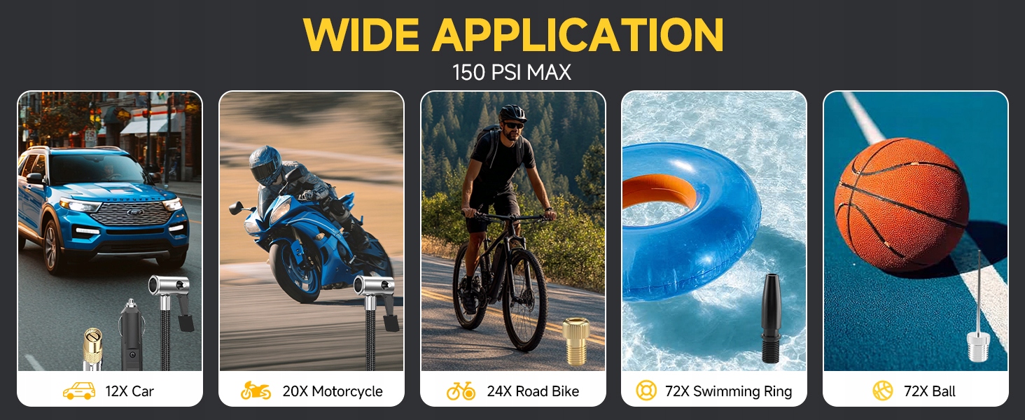 Многие применения - используйте не только в автомобиле! h1> компрессор позволяет качать автомобильные колеса, матрасы, игроки, понтоны и т. Д. h2>