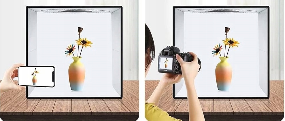Шатёр-студия способен не только обеспечить равномерное освещение, но и устранить тени и блики. Что еще более важно, нет стробоскопического эффекта. Не напрягает глаза при длительной работе. Без тяжелой металлической опорной рамы его намного легче и легче переносить.
