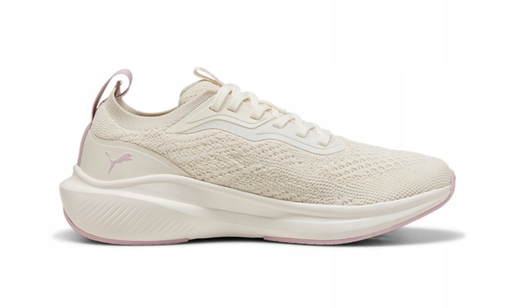 для женской обуви. Легкая верхняя часть этой модели была сделана из вентилируемой сетки, в представленном издании бежевого цвета. Он имеет футуристическую форму, которая хорошо выглядит на ноге. Целое было установлено на белой, пенной подошве, отделанной резиной. Это решение является гарантией удобства и комфорта