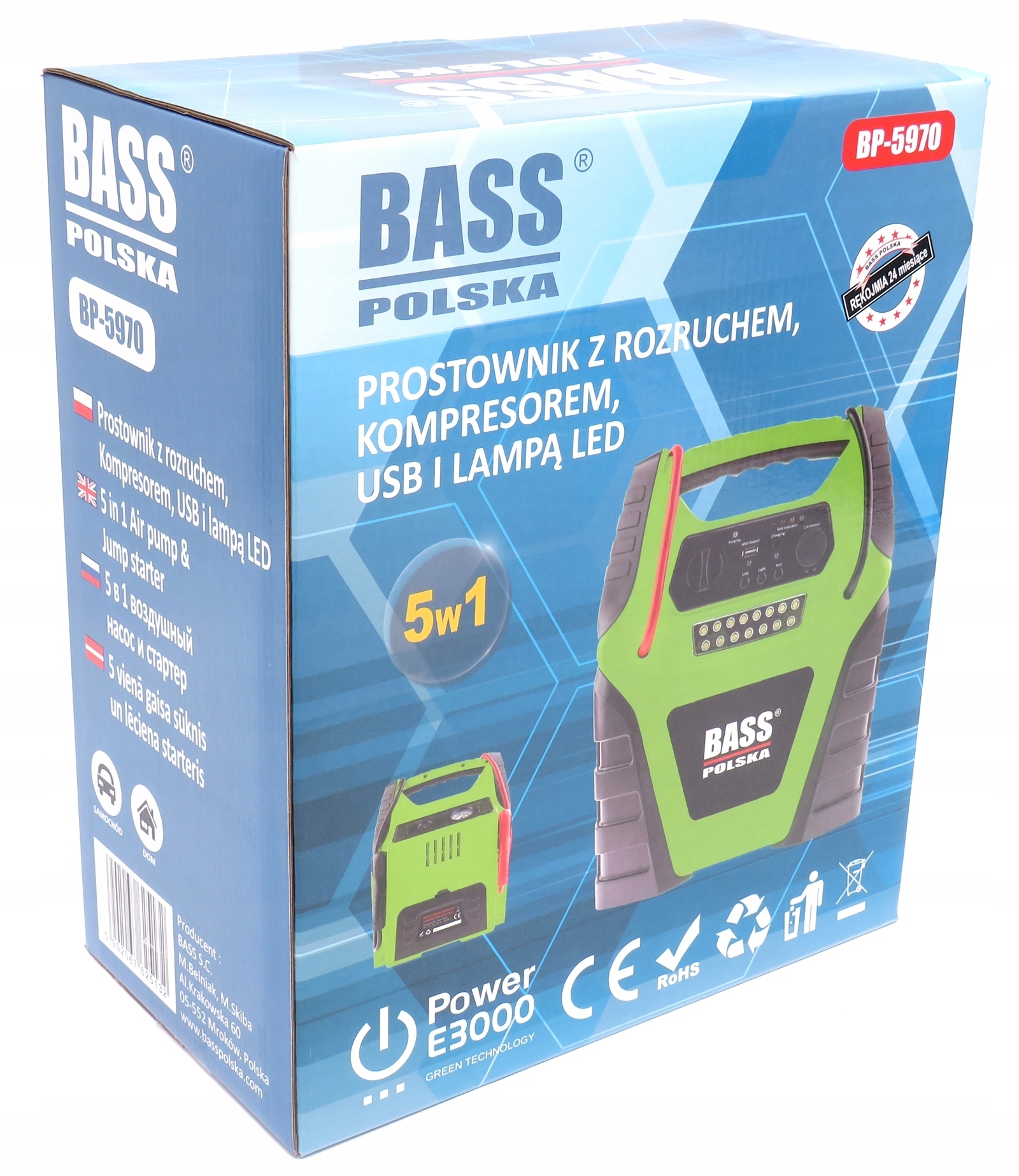 Многофункциональный выпрямитель/выпрямитель с пуском от Bass Polska оснащен одним из самых необходимых элементов, используемых в случае выхода из строя автомобильного аккумулятора, аккумулятора лодки или мотоцикла.
