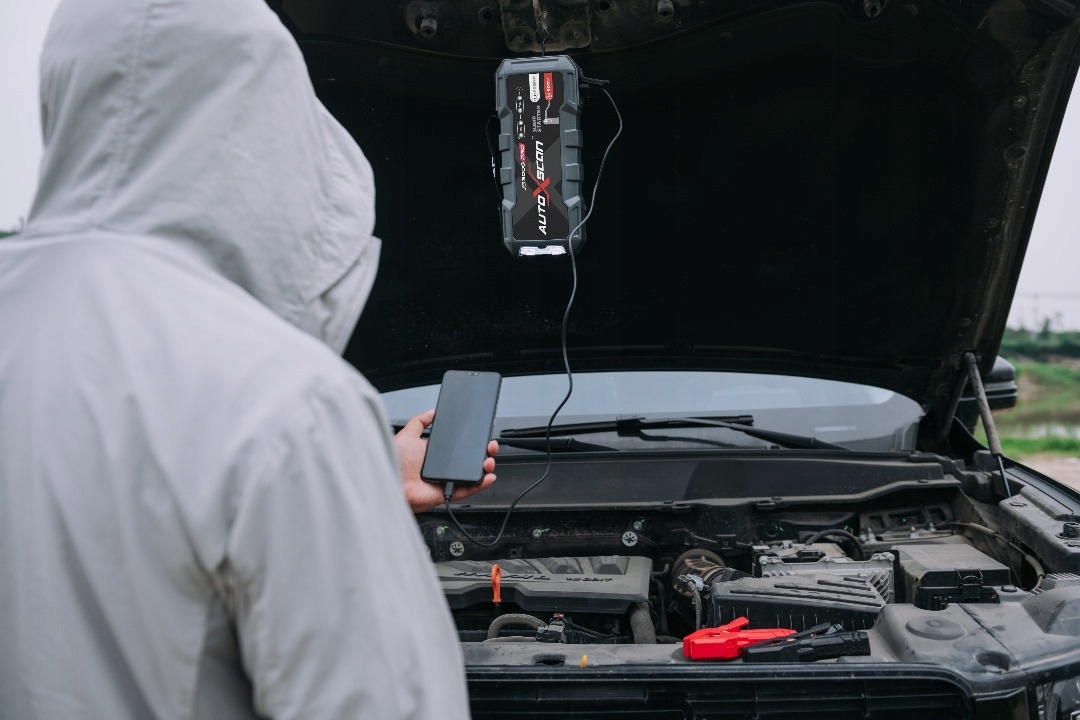 Starter Autoxscan JS3000 — инструмент для быстрого запуска до 3000 А, павербанк со встроенным светодиодным фонариком. AUTOXSCAN JS300 имеет встроенный крючок и прижимную лапку
