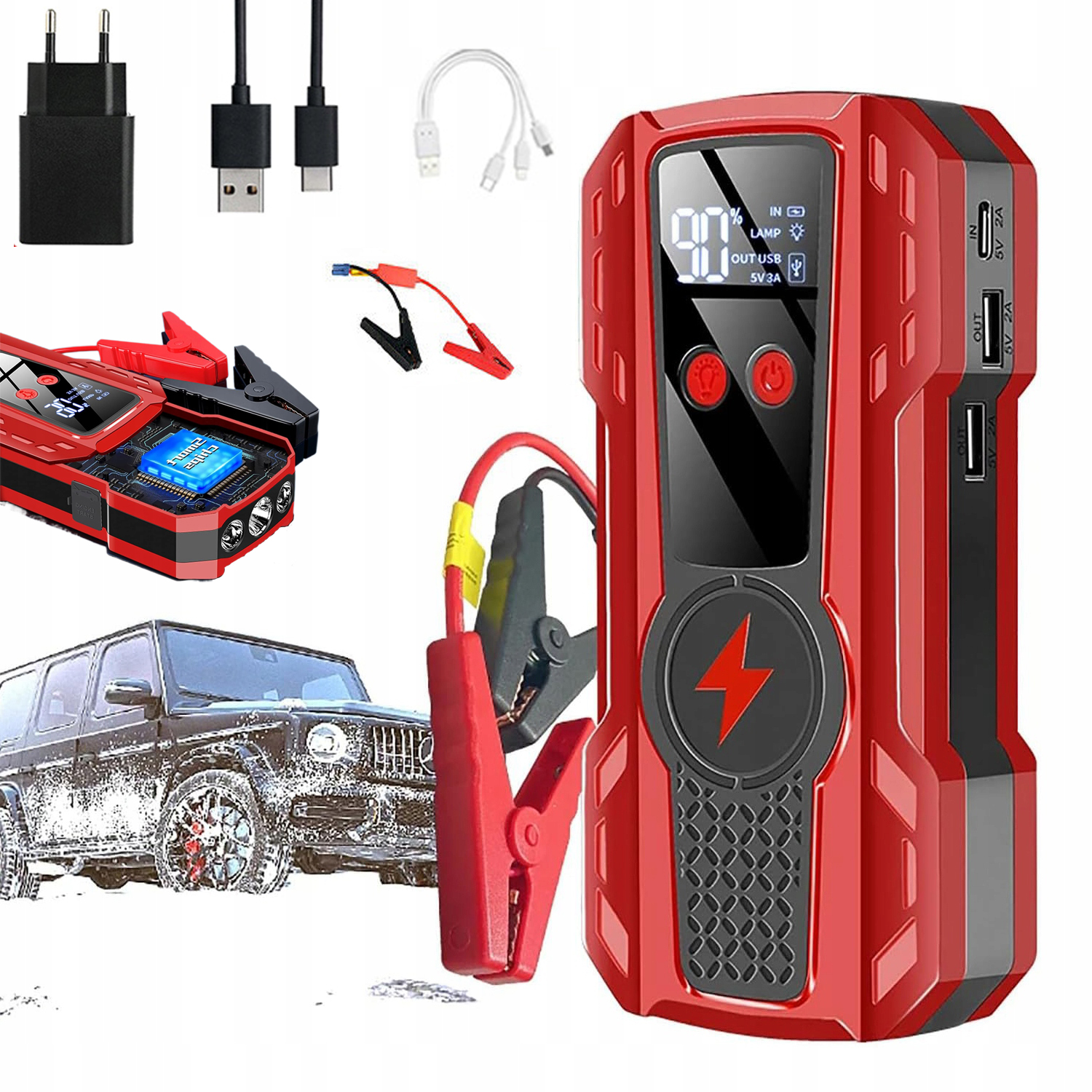 ПУСКОВОЙ СТАРТЕР ПУСКОВОЙ УСИЛИТЕЛЬ POWERBANK МОЩНЫЙ ФОНАРЬ МОЛОТОК 99900 мАч