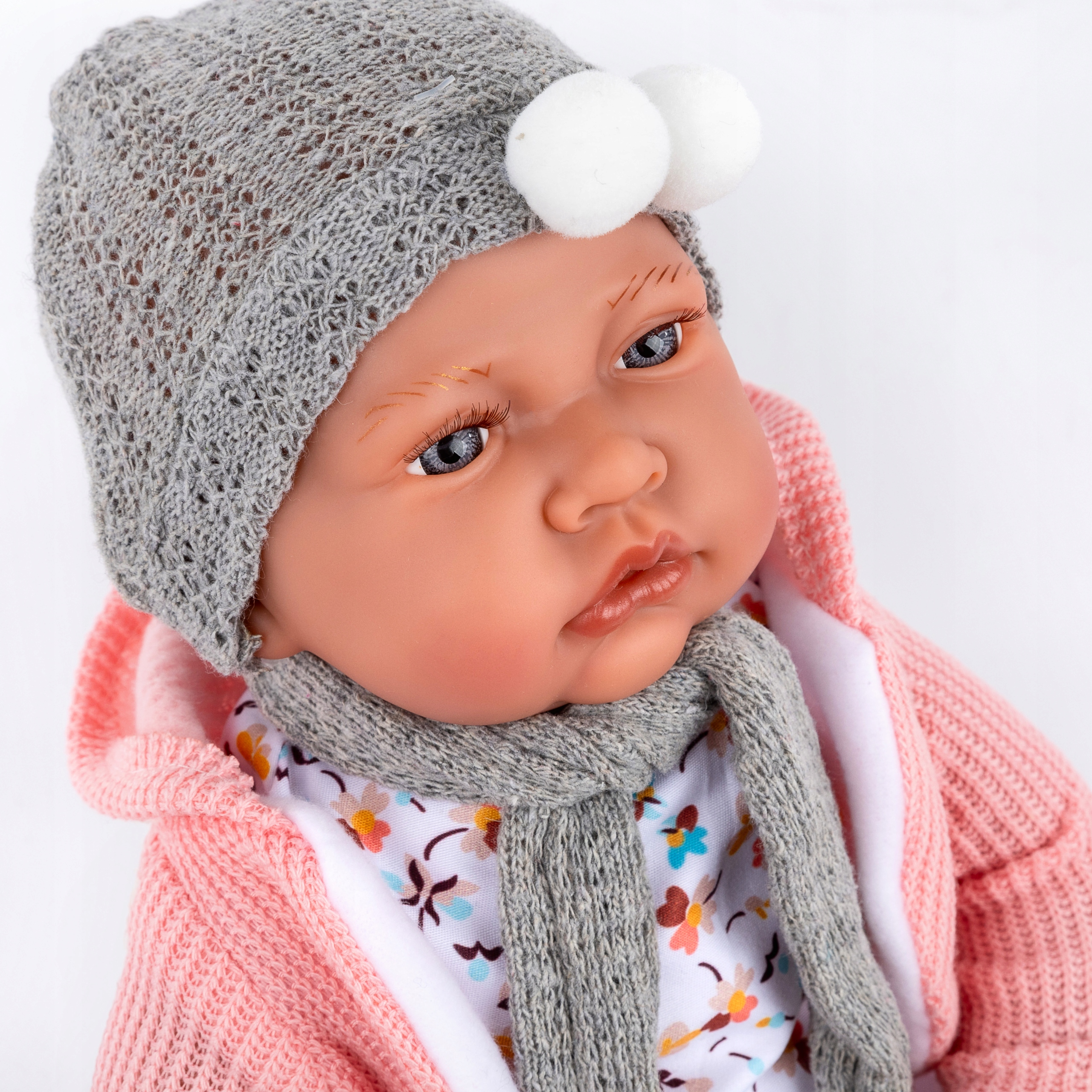 Позвольте вашему ребенку открыть для себя мир с нашей реалистичной куклой-девочкой, которая восхищает не только своим внешним видом, но и мягкими, дружелюбными прикосновениями. Одетая в стильный цветочный наряд, розовый свитер и серый зимний комплект (шапка, шарф и носки), эта кукла станет верным спутником в детских играх.