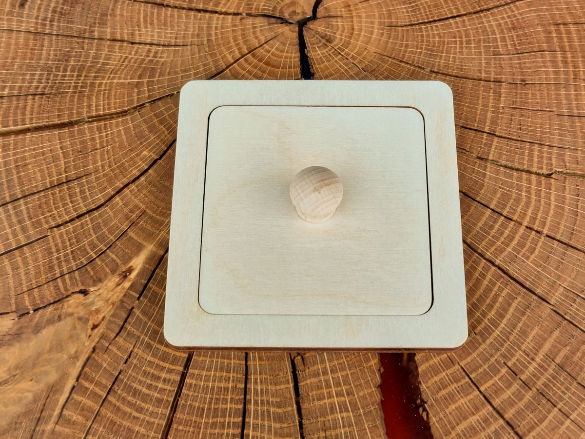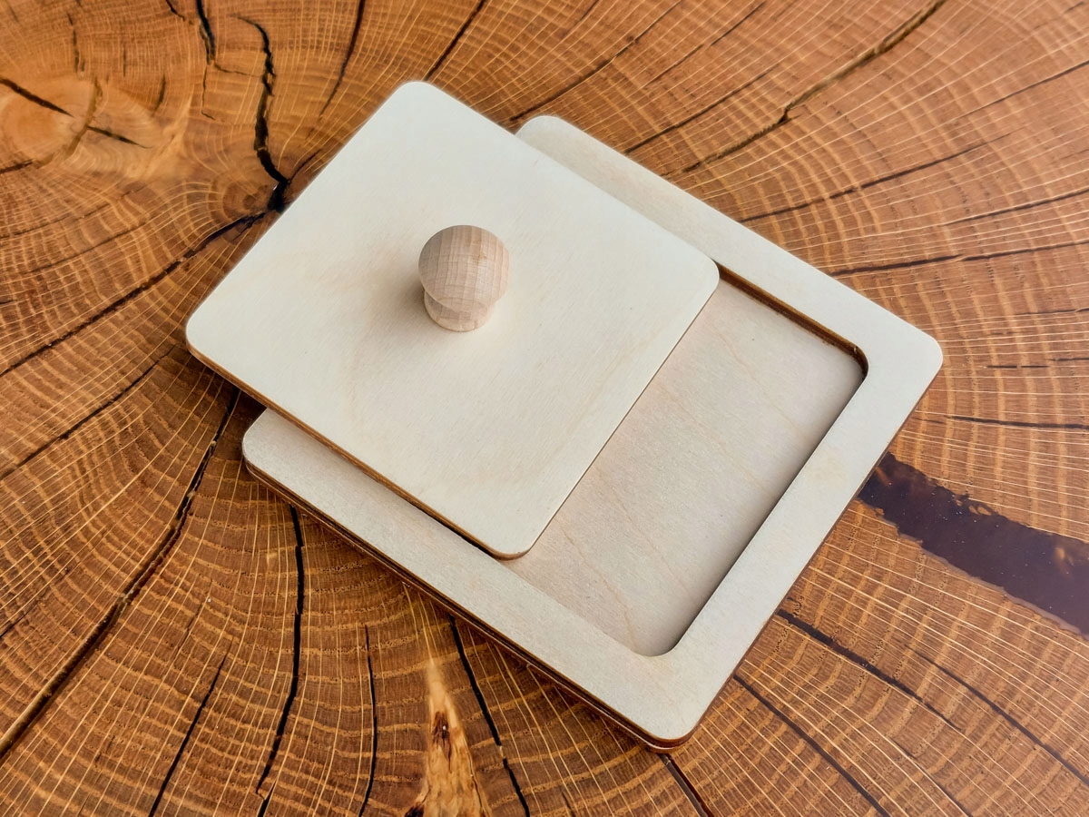 Пазл Монтессори, состоящий из кубика, изображающего геометрическую фигуру - квадрат.