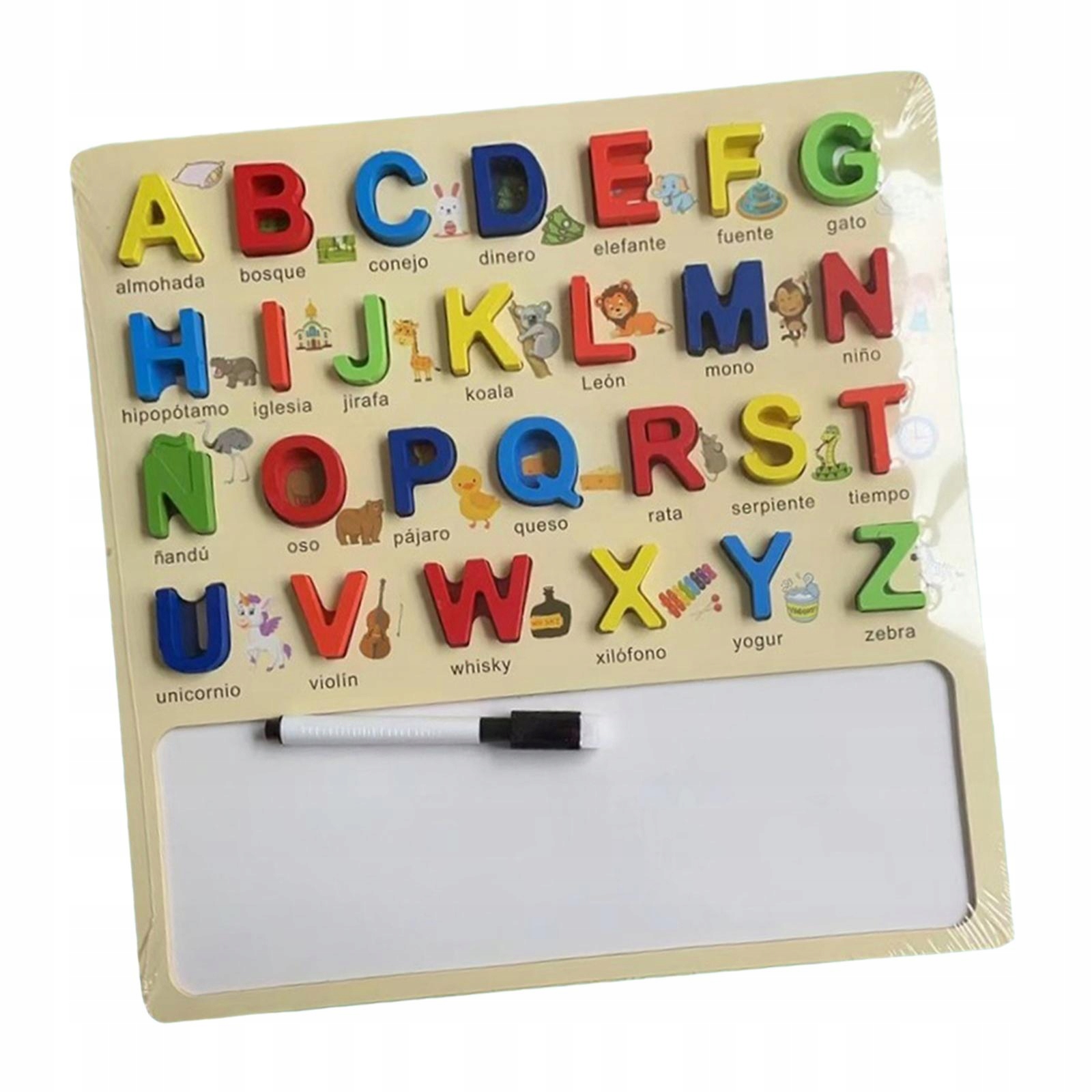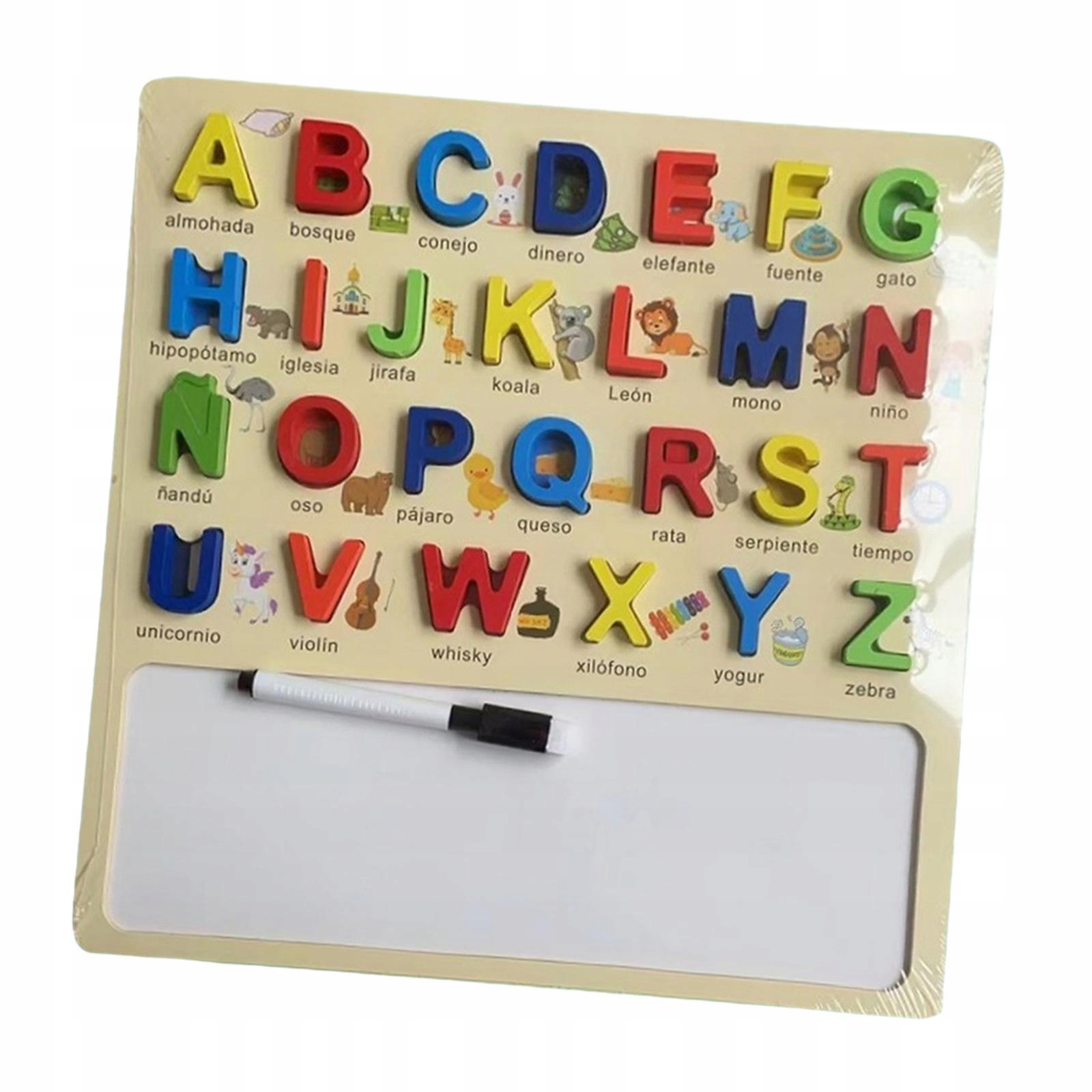 Puzzle z alfabetem. Problemy planszowe. Wczesne rozwiązywanie łamigłówek z drewnianymi kołkami